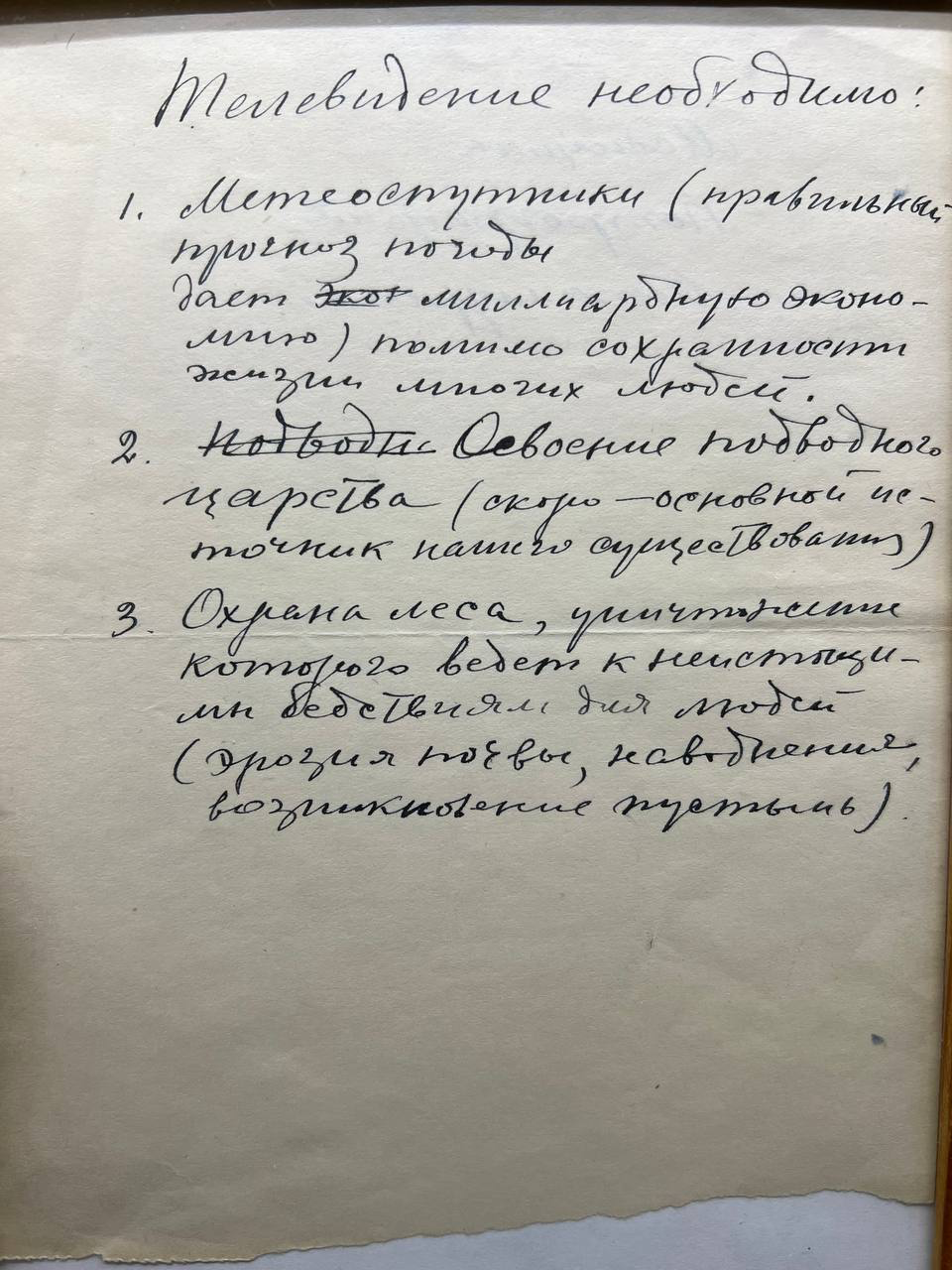 Особое место среди экспонатов музея занимают личные заметки Павла Васильевича, в которых он размышляет о том, для чего нужно телевидение, какие задачи оно способно решить. Эти записи показывают, что Шмаков мыслил масштабно, видел в телевизионных технологиях инструмент для решения важнейших задач человечества.