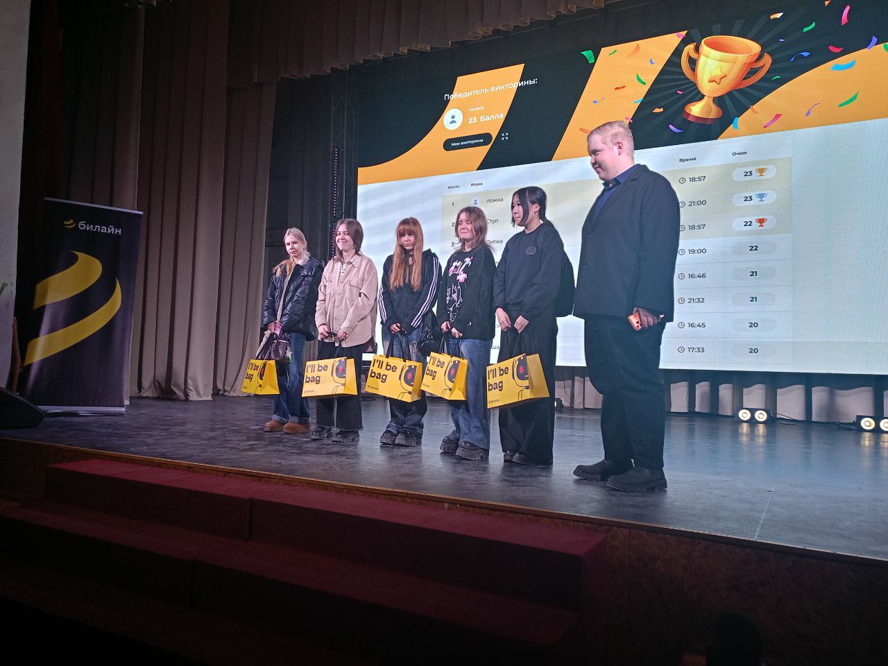 Гости лекции не только заглянули во внутреннюю структуру одной из ведущих телеком-компаний России, но и проверили свои знания в интерактивном квизе. Самые активные участники, верно ответившие на вопросы викторины, получили памятные призы от «Билайн».