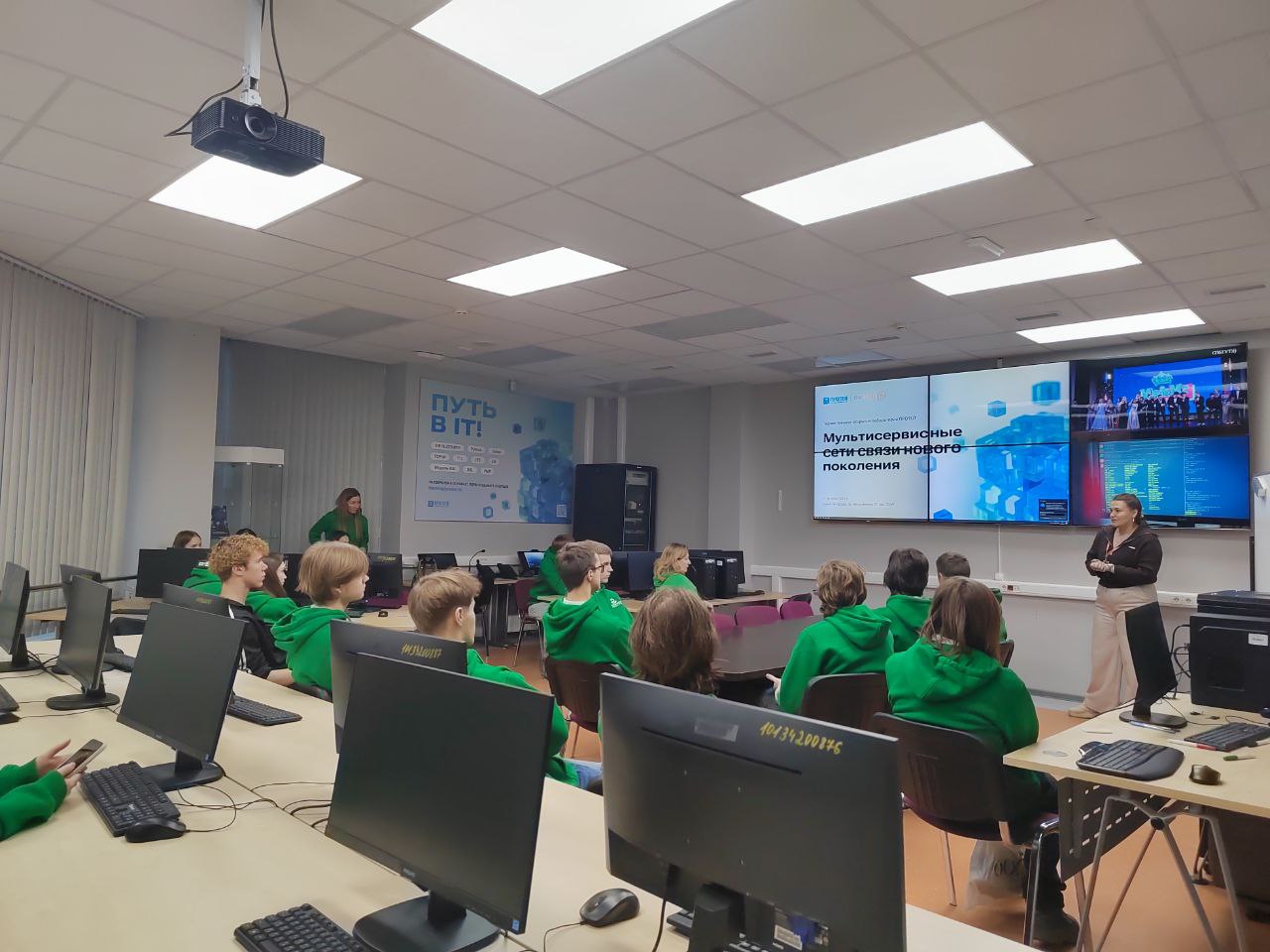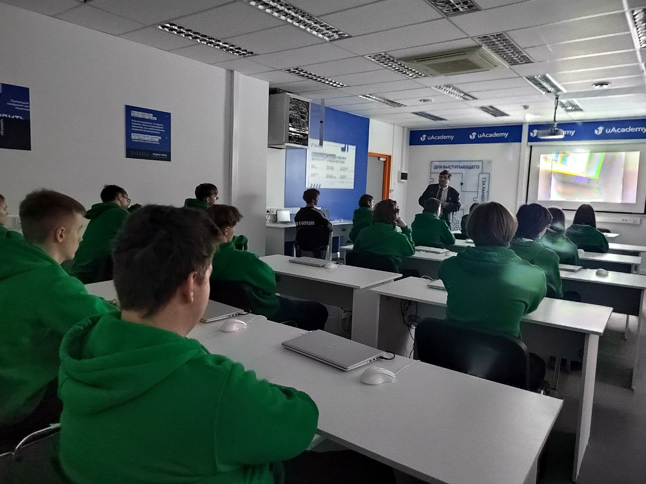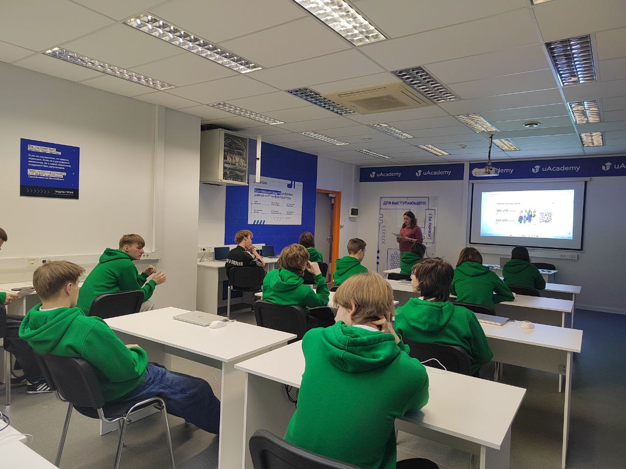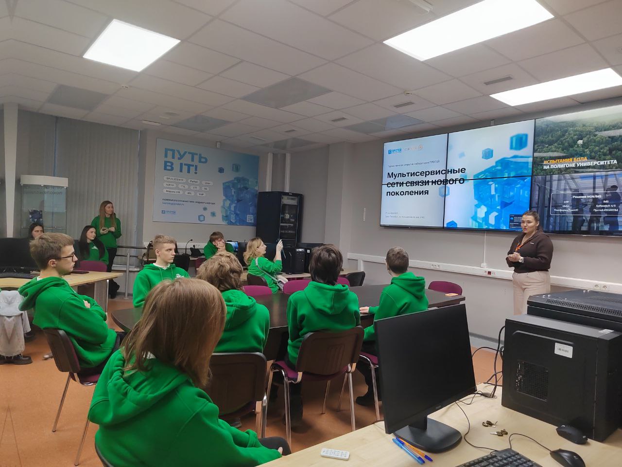 В учебно-исследовательской лаборатории UserGate заведующий кафедрой ЗСС Андрей Красов рассказал школьникам о перспективных направлениях в сфере информационной безопасности и об обучении на факультете кибербезопасности в СПбГУТ.