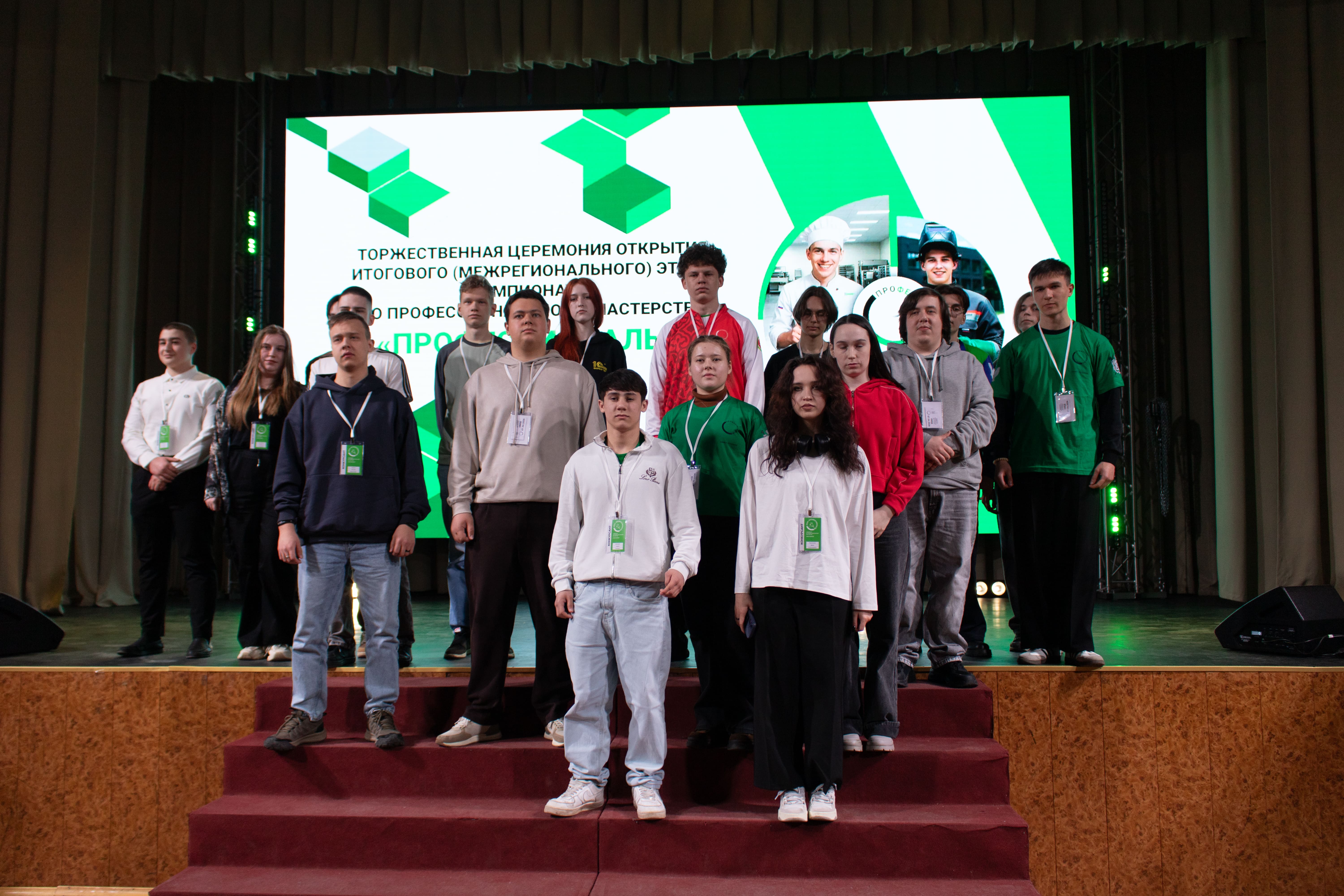 На сцене приветствовали конкурсантов со всех регионов России от Санкт- Петербурга до Приморского края. Это победители региональных этапов чемпионата «Профессионалы» по компетенциям «Автоматизация бизнес-процессов организаций», «Автоматизация бизнес-процессов организаций (юниоры)», «Цифровые возможности для бизнеса» и «Цифровая трансформация».