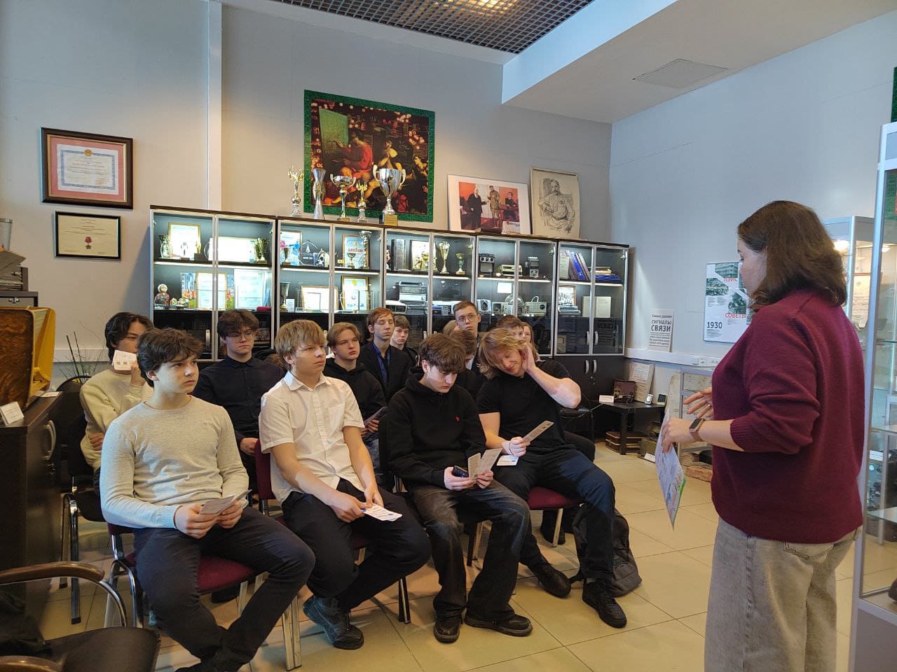 Сначала гости посетили Музей СПбГУТ, где узнали об этапах становления вуза, его роли в развитии отрасли связи и телекоммуникаций, а также о вкладе ученых университета в науку и развитие технологий.
