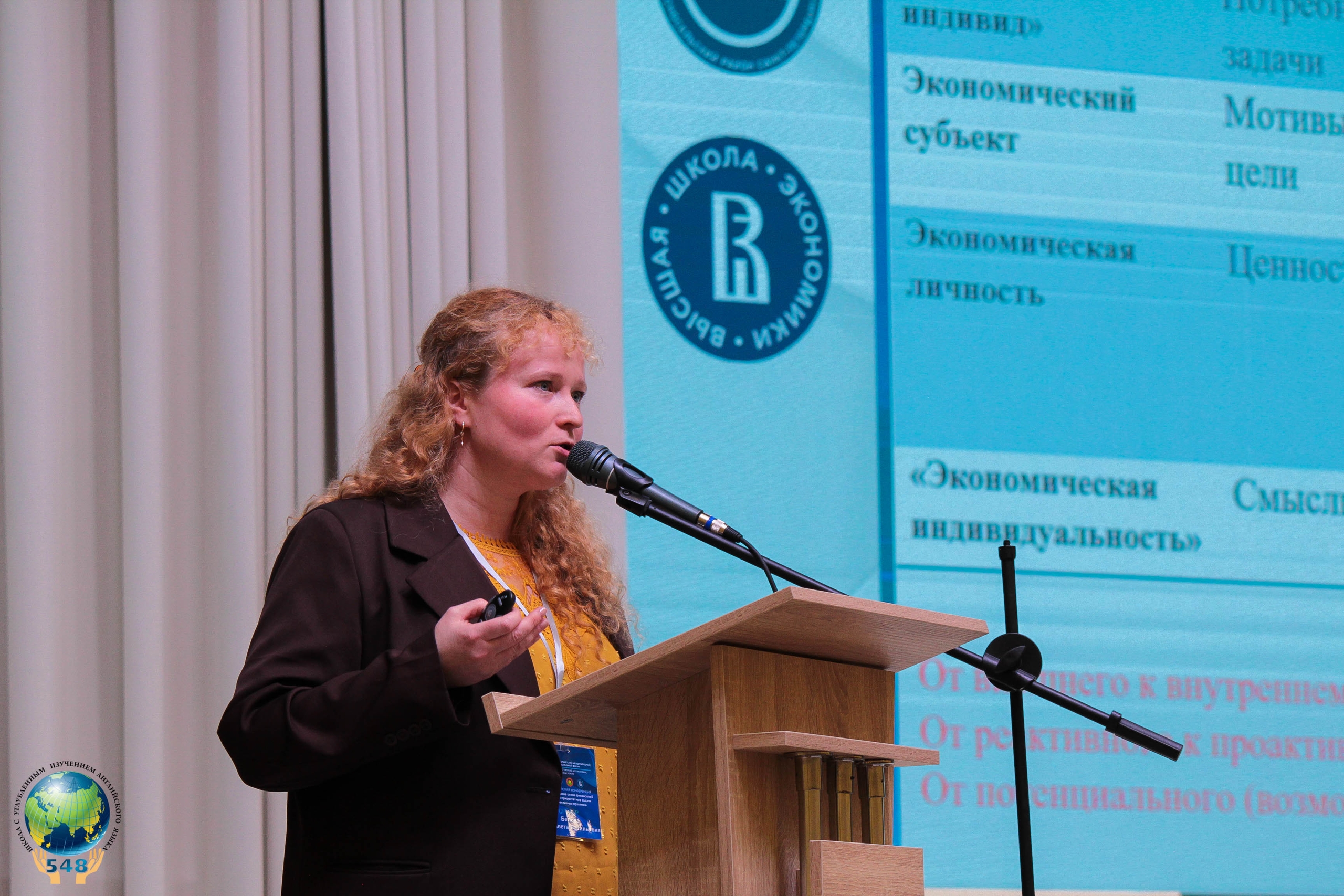 Доцент кафедры социально-политических наук Елизавета Белова выступила на пленарном заседании с докладом «Уязвимости, ресурсы и этапы развития экономической личности».