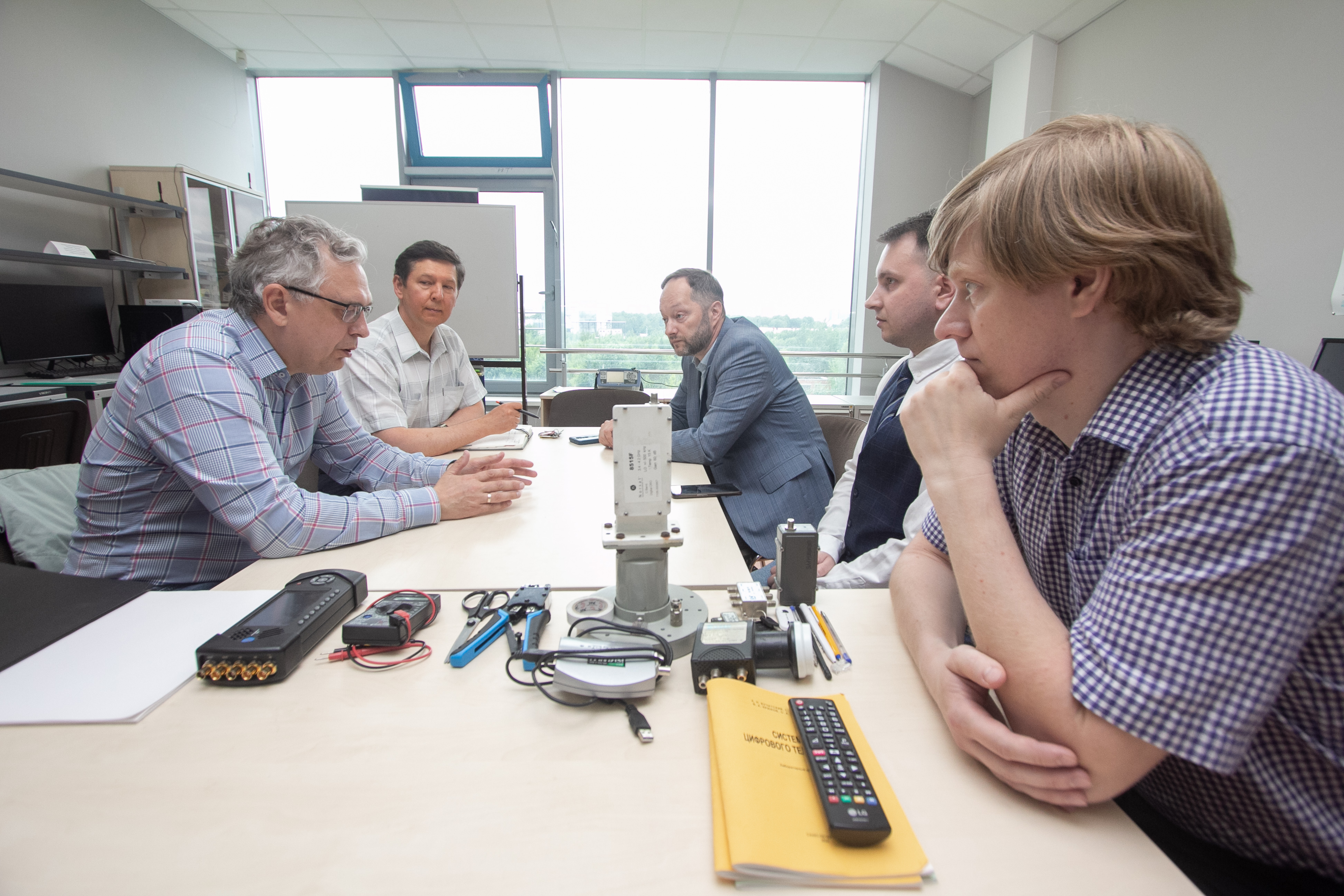 В дискуссии приняли участие заведующий кафедрой цифрового телевидения и метрологии (ЦТМ) Сергей Фёдоров, директор института магистратуры, заместитель заведующего базовой кафедрой «Цифровое телевизионное и радиовещание» Александр Бучатский, старшие преподаватели кафедры ЦТМ Дмитрий Татаренков и Сергей Куликов.