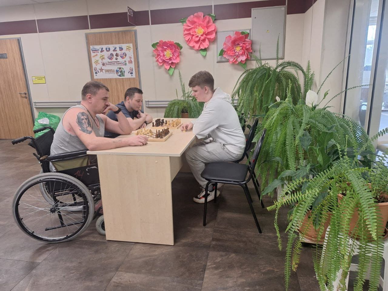 16 апреля в Госпитале для ветеранов войн прошёл мастер-класс по шахматам, организованный студентами и сотрудниками СПбГУТ. Это мероприятие стало частью программы благотворительной помощи пациентам госпиталя, в числе которых находятся участники СВО. Игра проходила на четырёх досках, где встретились настоящие чемпионы — студенты университета — и пациенты, только начинающие знакомство с основами этой увлекательной игры.