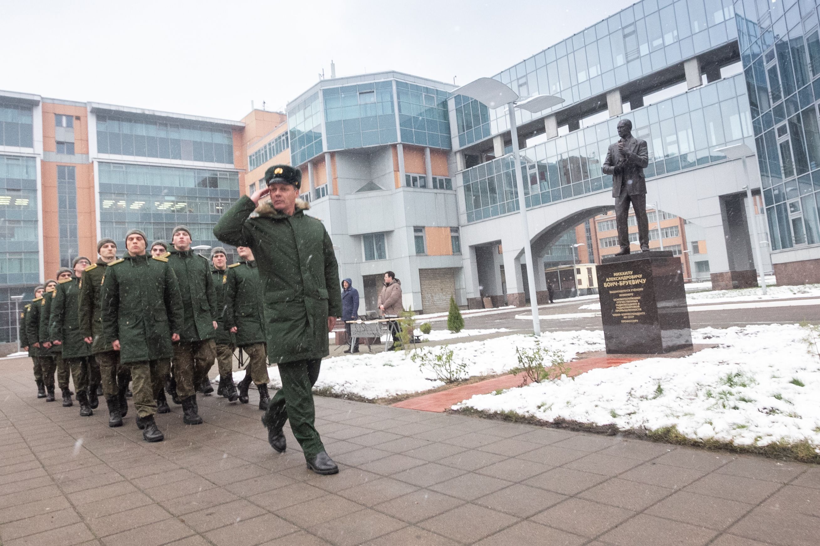 26 ноября прошла торжественная церемония открытия полноразмерного памятника из бронзы Михаилу Александровичу Бонч-Бруевичу — ученому-радиотехнику, чьи изобретения изменили ход истории связи. Монумент установили в СПбГУТ во внутреннем дворе корпуса на проспекте Большевиков, 22. Он был подарен вузу компанией-разработчиком и производителем DWDM-систем и технологий ООО «Т8», входящей в Попечительский совет СПбГУТ.