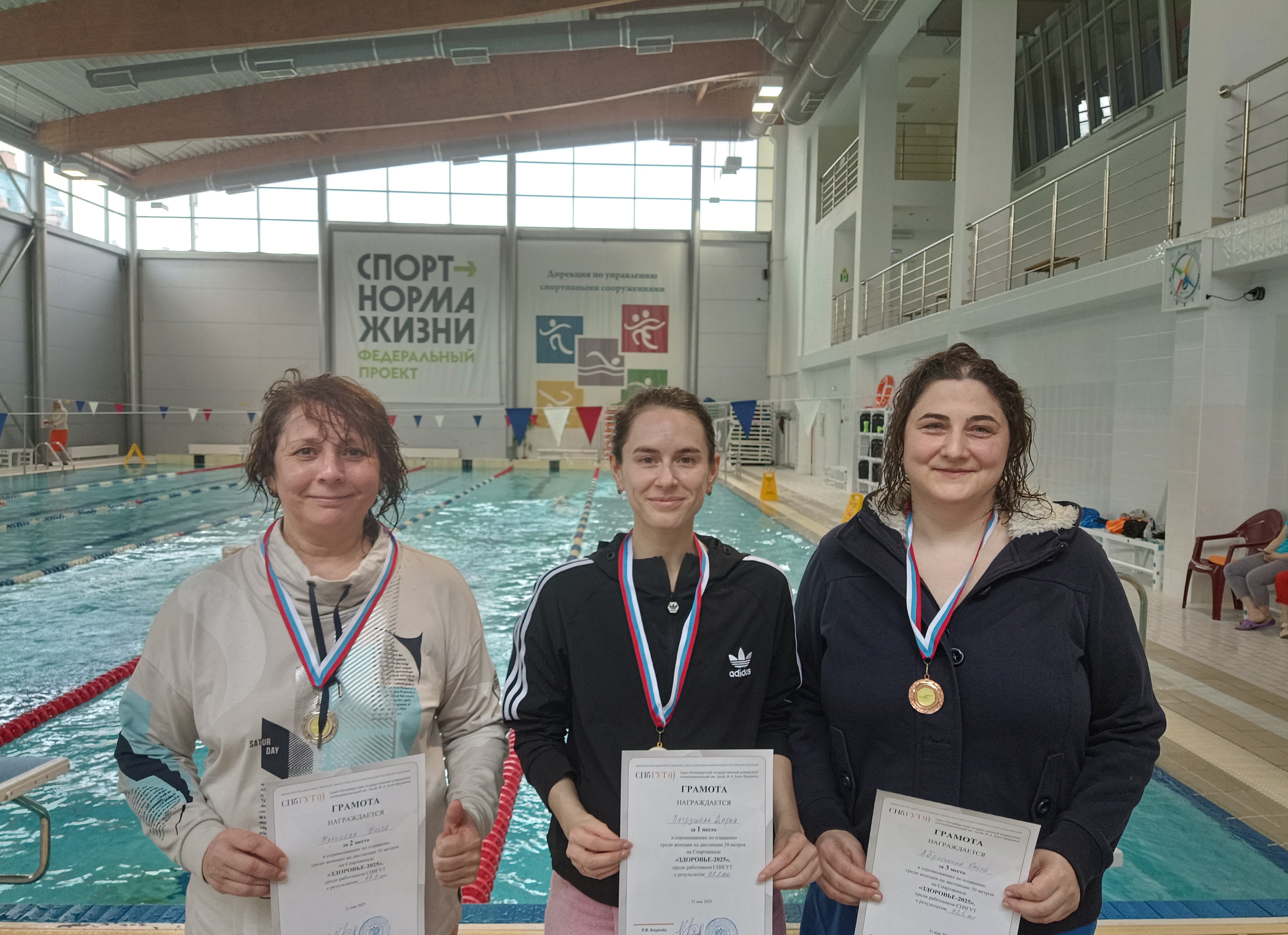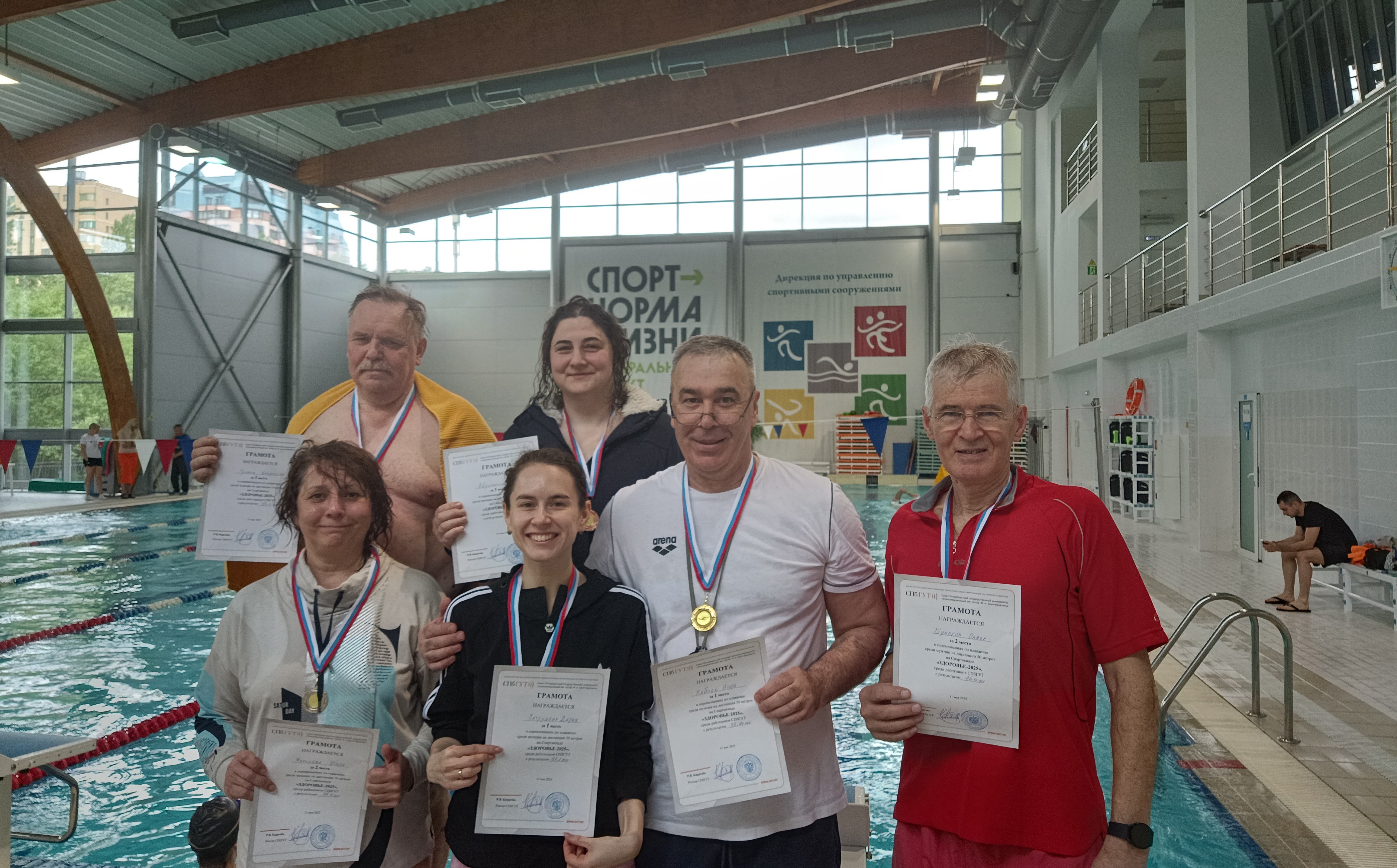 Соревнования по плаванию 31 мая подвели итог Спартакиады «Здоровье-2025». Результаты учитывались с поправками на возраст по таблице соревнований по морскому многоборью.
