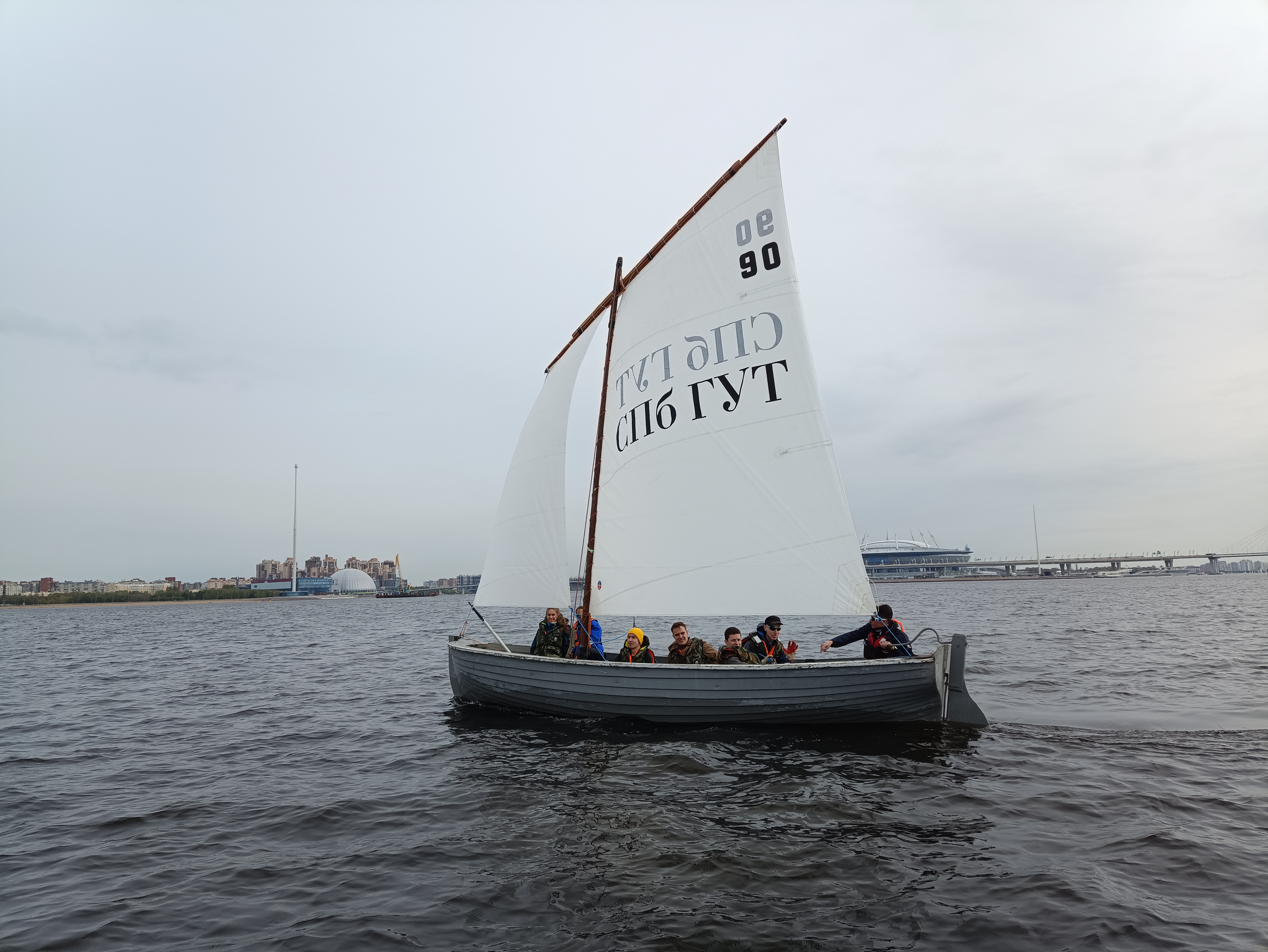 18 мая студенты СПбГУТ впервые без тренера приняли участие в чемпионате города по парусным гонкам на ялах (шлюпках), которые прошли в Финском заливе.