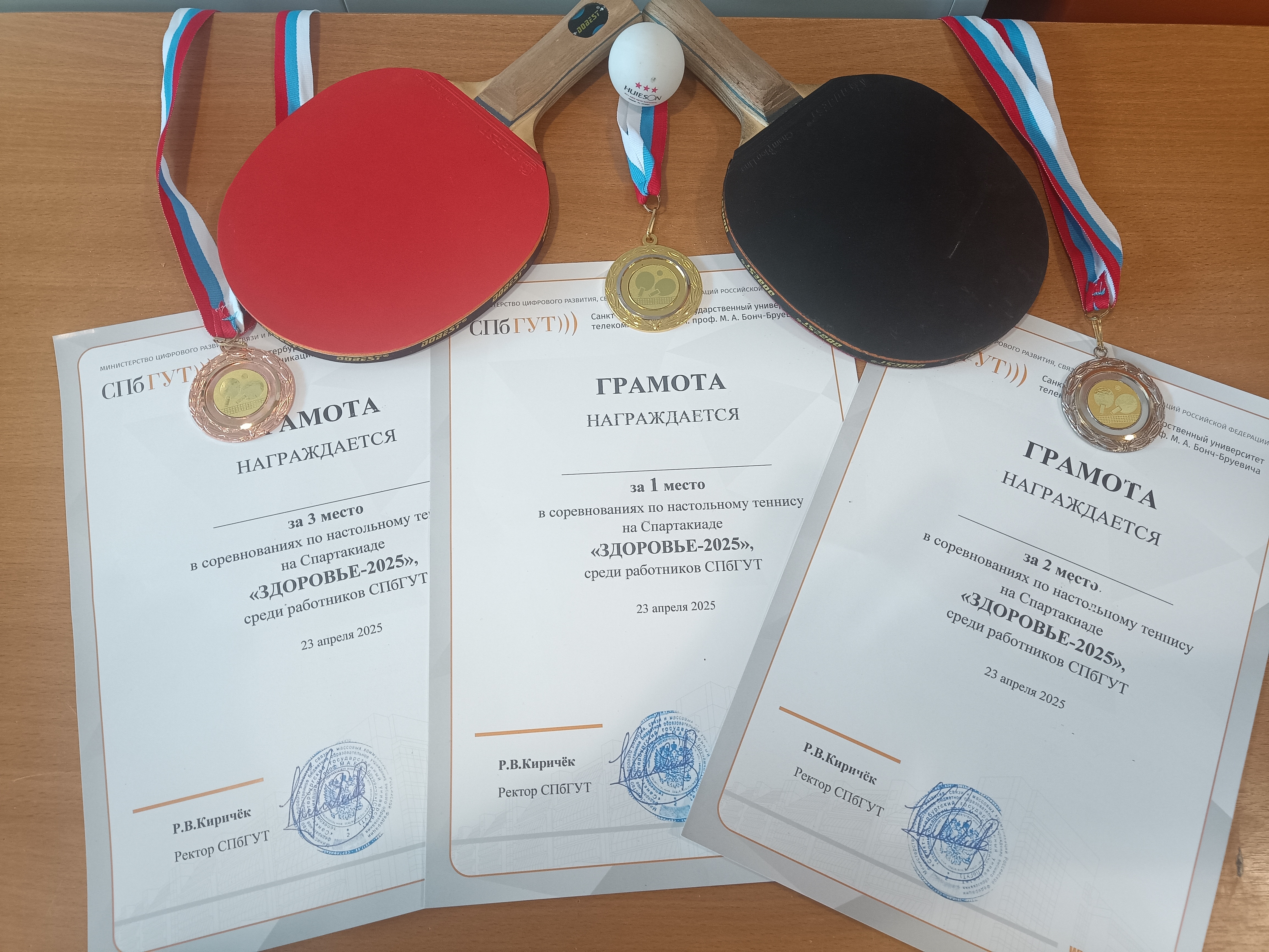 Спартакиада «Здоровье-2025», посвящённая 95-годовщине со дня образования СПбГУТ (ЛЭИС), началась в Международный день настольного тенниса с соревнований по этому виду спорта. Оспаривать звание «первой ракетки СПбГУТ» вышли 12 работников из 7 команд.