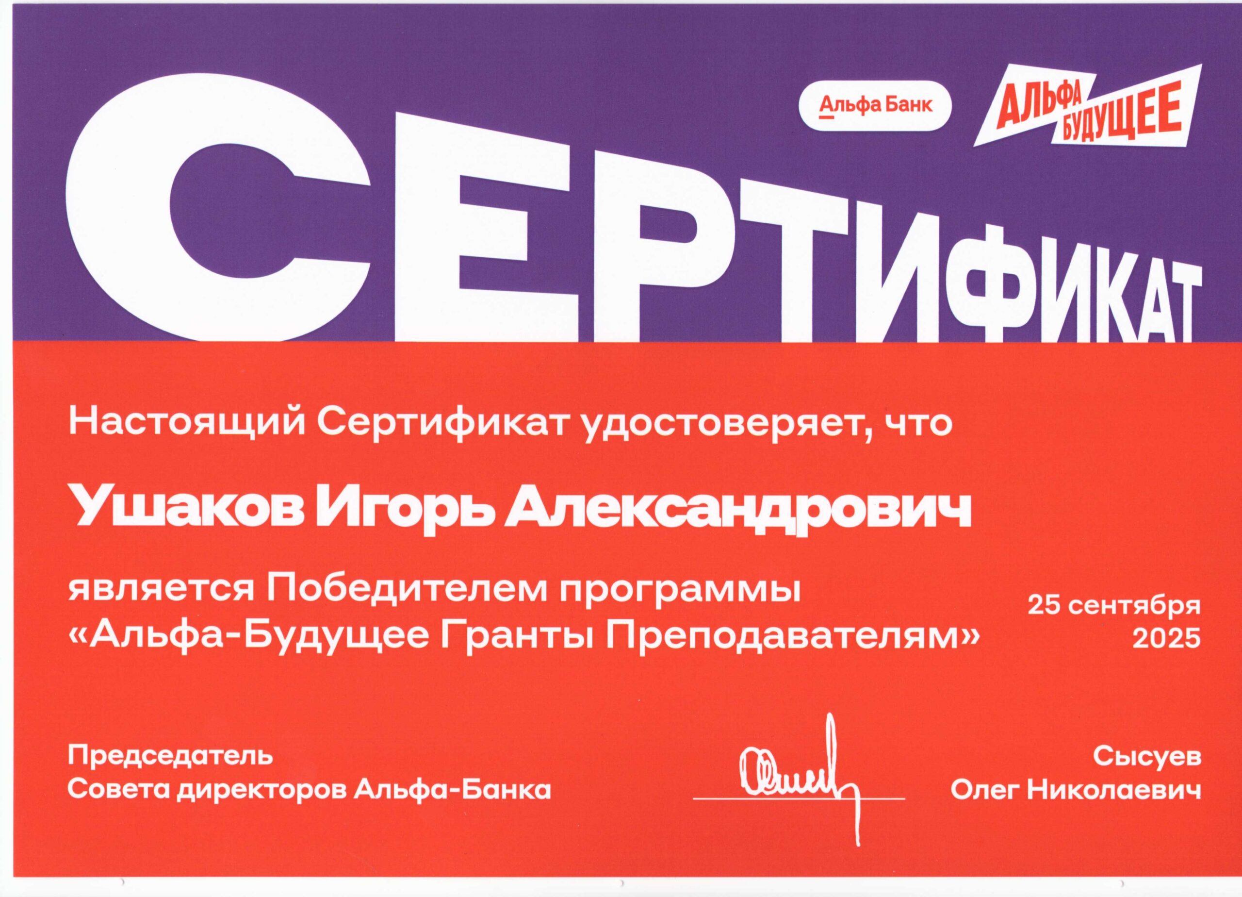 4. победитель конкурса грантов для студентов вузов, расположенных на территории Санкт-Петербурга, аспирантов вузов, отраслевых и академических институтов, расположенных на территории Санкт-Петербурга (2020 г.);