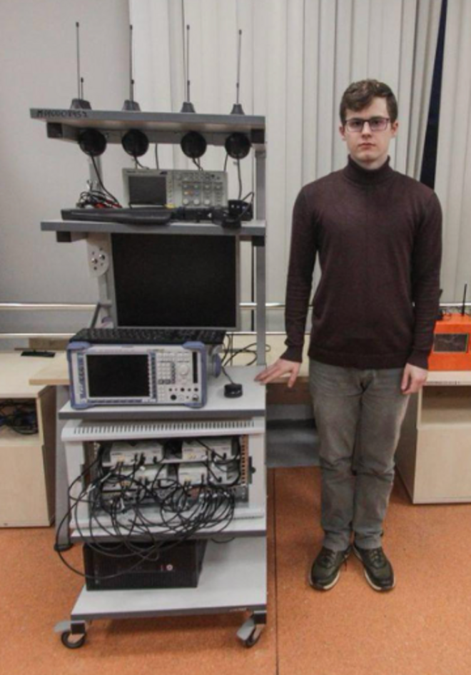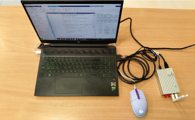 Содержит устройство программно-конфигурируемого радио, персональный компьютер (ноутбук) с установленным программным обеспечением “MATLAB”