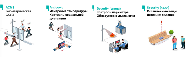 Комплексная система видеоаналитики на базе смарт-камер, обеспечивающая безопасную образовательную среду путем реализации сценариев распознавания, предупреждения опасных ситуаций, контроля эпидемиологической ситуации.