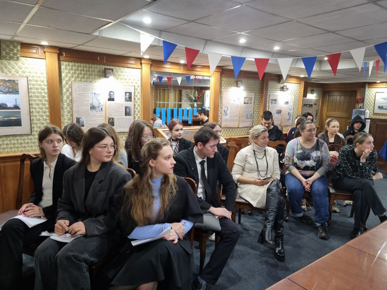 От СПбГУТ на «Красин» прибыли студентки 1 курса направления «Зарубежное регионоведение» факультета СТЭД: Алина Басанова, Виктория Киндзерская и Арина Новикова. Возглавил делегацию завкафедрой ИРВ Антон Гехт.