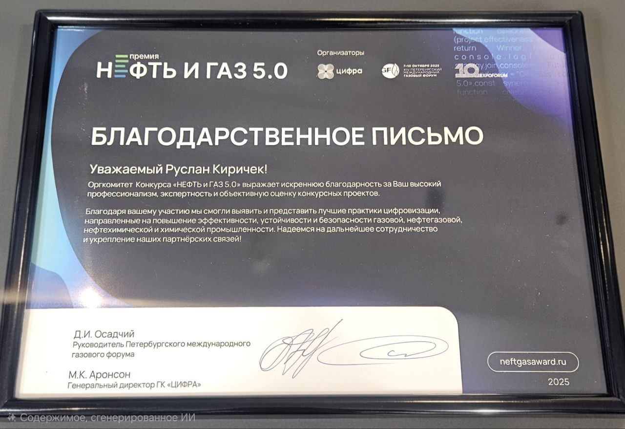 «Благодаря вашему участию мы смогли выявить и представить лучшие практики цифровизации, направленные на повышение эффективности, устойчивости и безопасности газовой, нефтегазовой, нефтехимической и химической промышленности!» — отмечается в письме.