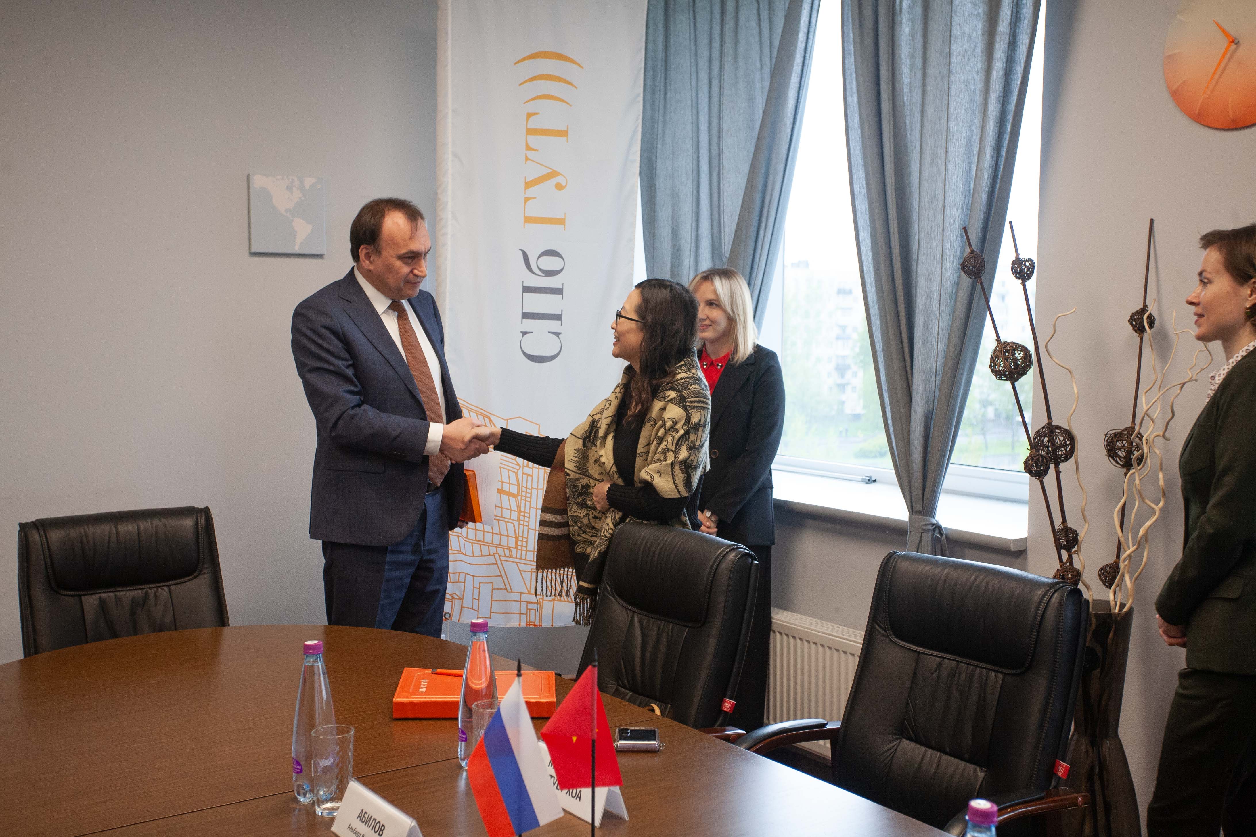 22 мая Санкт-Петербургский университет телекоммуникаций посетила Первый секретарь Посольства Социалистической Республики Вьетнам Май Нгуен Тует Хоа и ведущий специалист отдела по связям с международными организациями Комитета по внешним связям Санкт-Петербурга Анастасия Иванова. Гостей приветствовал первый проректор - проректор по учебной работе Альберт Абилов и начальник управления международного сотрудничества Яна Ильинская.