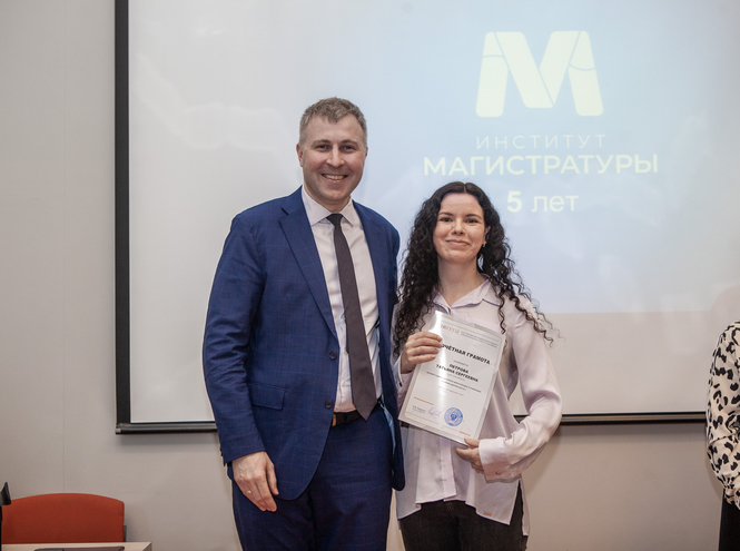 Отдельные слова благодарности институту магистратуры высказали студенты и выпускники. Ассистент кафедры ИУС, выпускница института магистратуры 2021 года Анастасия Жаранова выразила огромную признательность институту и его сотрудникам за поддержку в учёбе и профессиональном становлении. Она отметила теплоту и внимание, которое получают студенты в работе и общении с представителями института магистратуры.