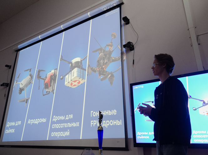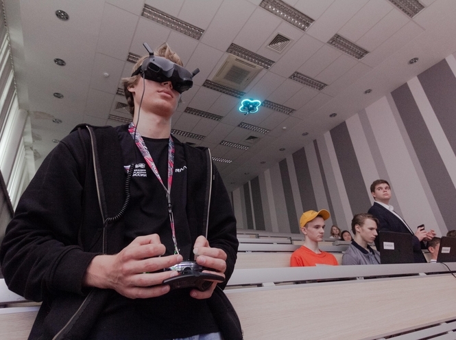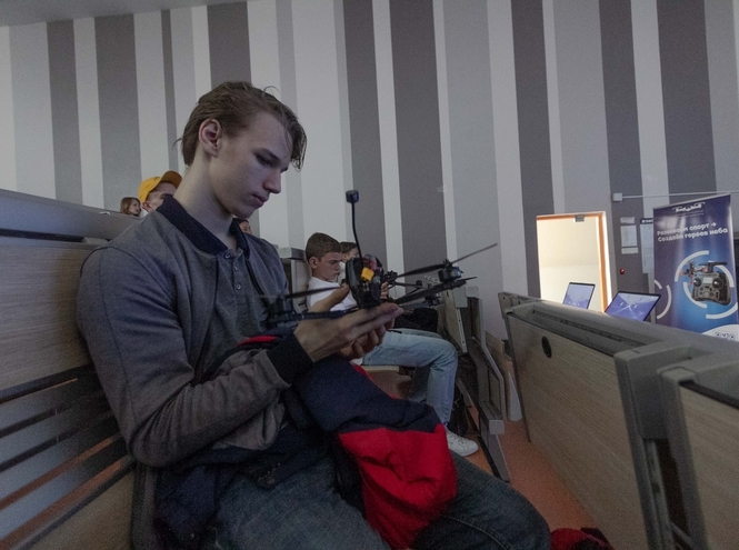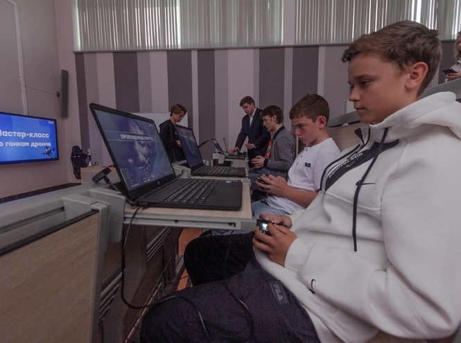 Первый мастер-класс был посвящён гонкам дронов. Ребята познакомились с основами управления дронами с помощью участников университетской сборной «Бончевские Соколы».