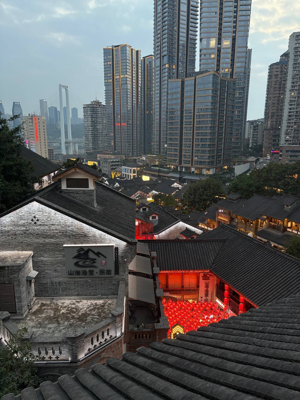 Мое первое впечатление — это удивление, восхищение и лёгкая растерянность. Город, расположенный на горах и окружённый реками, поражает своими масштабом и динамикой. С первых минут бросается в глаза контраст между современными небоскрёбами и традиционными кварталами, где сохранился дух старого Китая. Город окутан лёгкой дымкой, которая придаёт ему особую атмосферу.