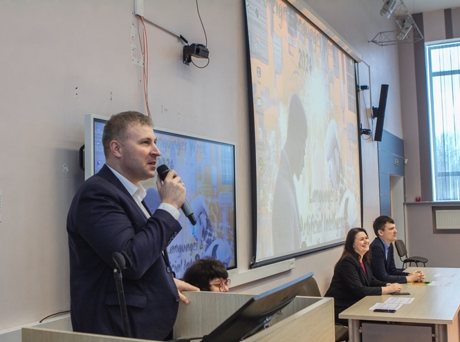 В этом году технологическая часть Недели была представлена темой «Искусственный интеллект». С динамичной историей развития AI студентов и коллег познакомил доцент кафедры ИУС Феликс Филиппов.