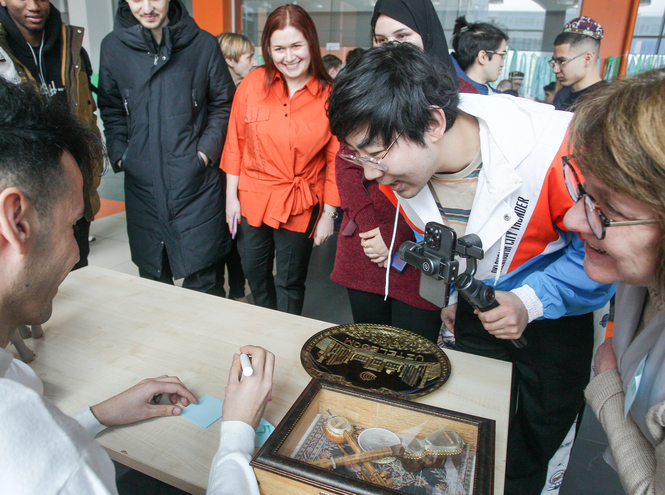 Особый интерес у ребят вызвало написание имен на арабском языке. Студент университета из Туниса Мохамед Бен Гедрия каждому желающему с большим удовольствием показал, как выглядит их имя, и вручил на память листочек с иероглифами. Завершился праздник выступлением музыкального коллектива «ИмиНами».