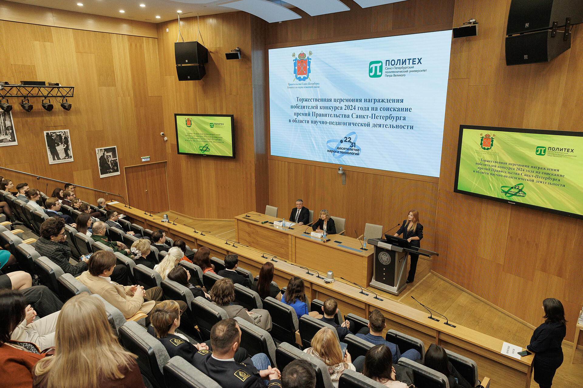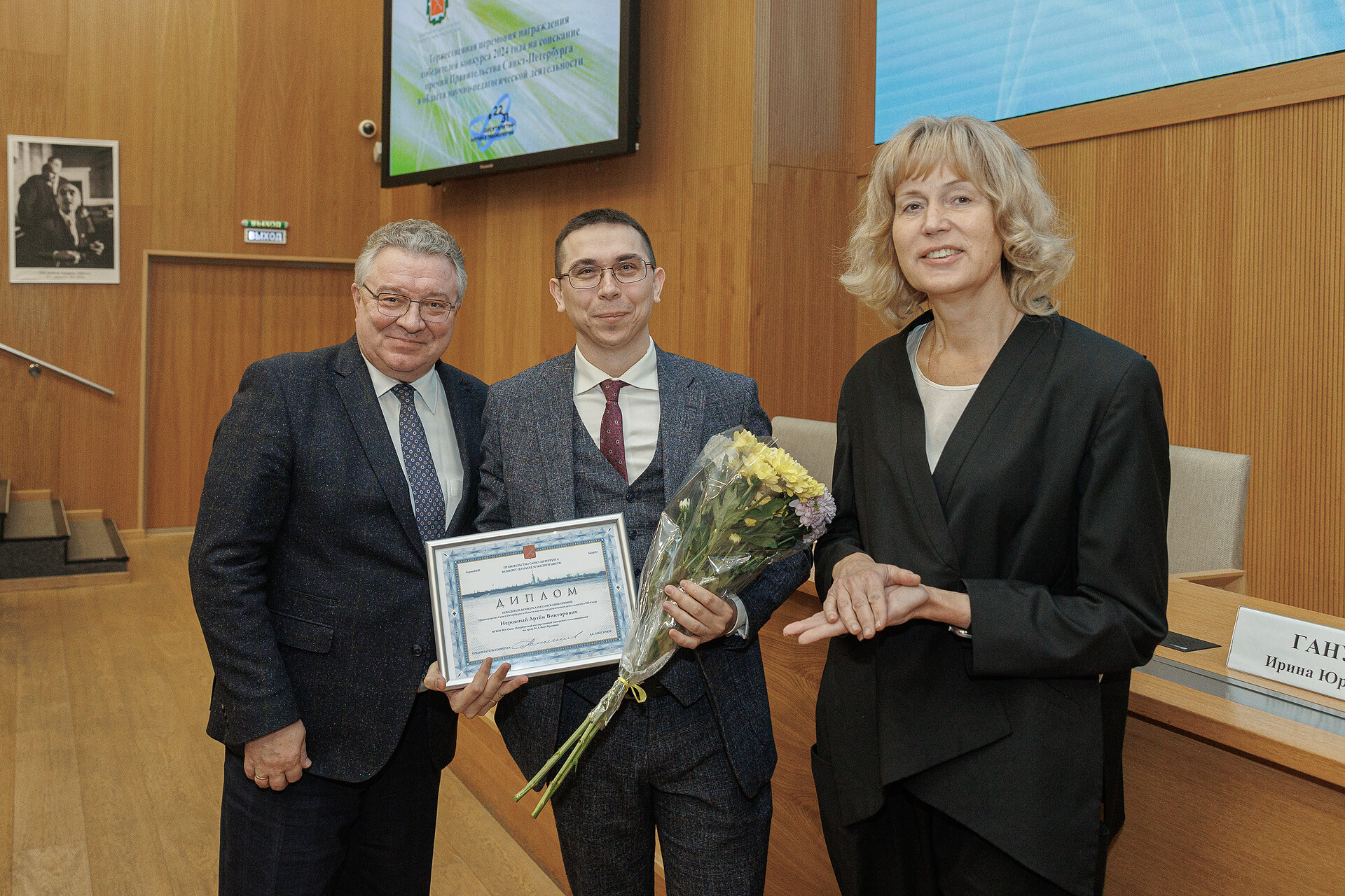 Дипломы победителям вручали д. т. н., проф., академик РАН, ректор СПбПУ им. Петра Великого Андрей Рудской и первый заместитель председателя Комитета по науке и высшей школе Ирина Ганус.