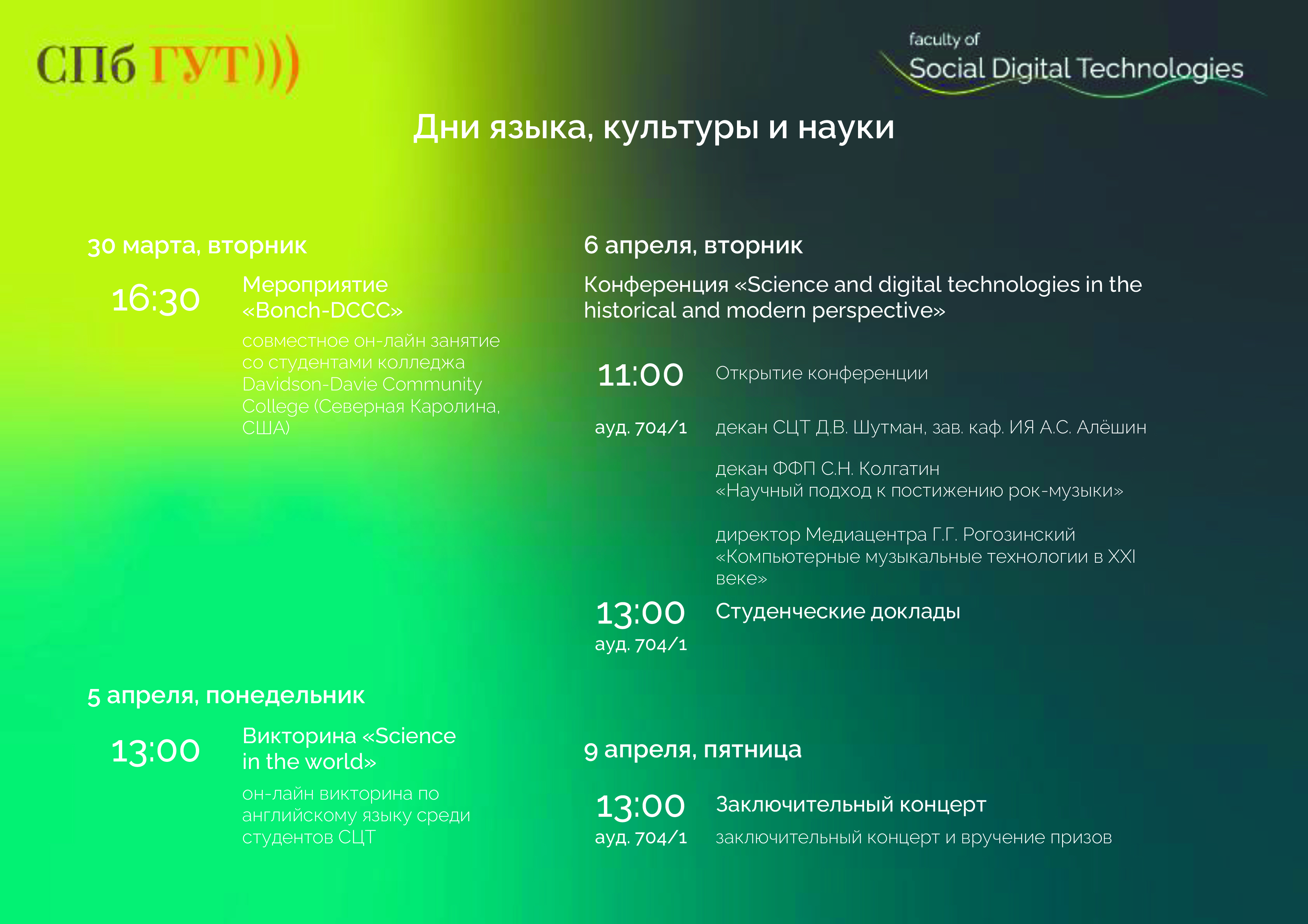 На факультете социальных цифровых технологий стартовало ежегодное мероприятие - Дни языка, культуры и науки, организованное кафедрой иностранных языков под руководством заведующего кафедрой А.С. Алëшина.