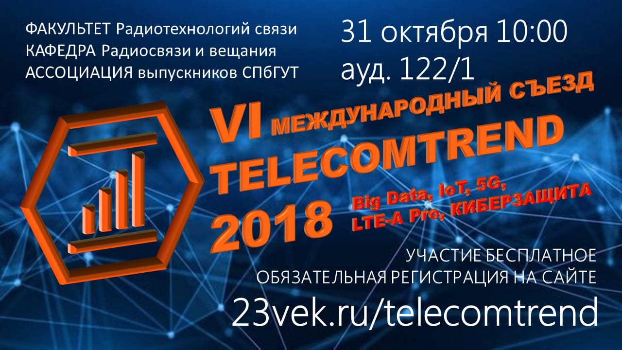 31 октября в СПбГУТ состоится VI международный съезд "Telecomtrend", посвященный вопросам развития технологий мобильной и беспроводной связи.