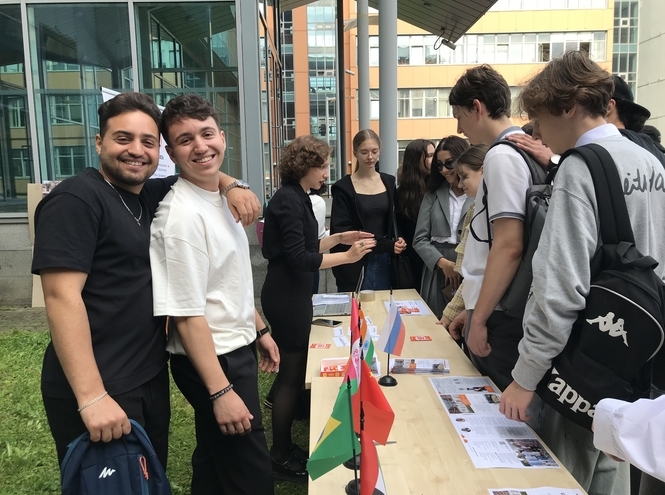 На прошлой неделе на празднике День знаний при проведении фестиваля «Знакомьтесь, Бонч» первокурсники узнали о международной работе в университете. Сотрудники управления международного сотрудничества вместе с иностранными студентами рассказали ребятам о деятельности управления, предлагаемых программах международного обмена, о студенческих международных клубах университета и организациях ("Bonch International Team", Совет иностранных студентов, «Сигнал»).