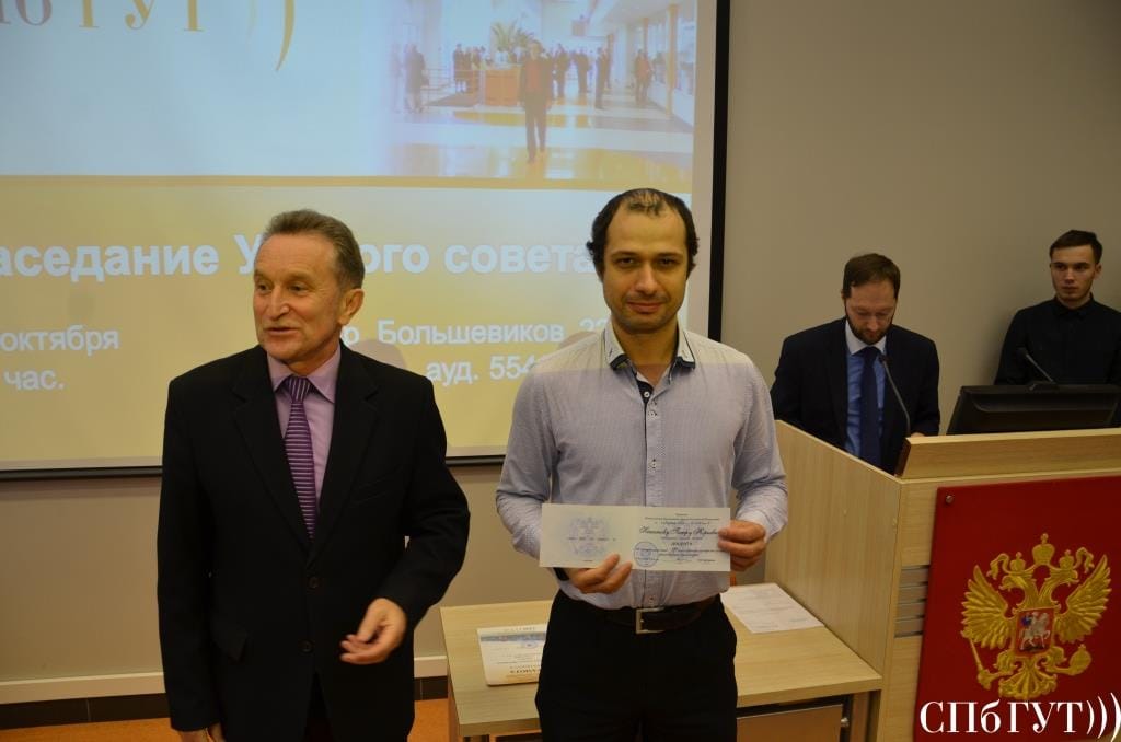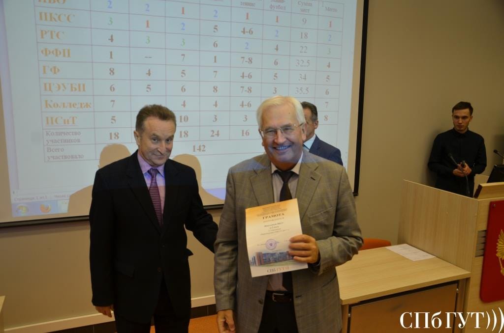 • вручение Благодарности коллективу кафедры телевидения и метрологии за большой вклад в подготовку в Санкт-Петербурге высококвалифицированных специалистов в области телекоммуникаций и информационно-измерительных технологий и в связи с 80-летием со дня основания кафедры ТВиМ ФГБОУВО СПбГУТ от губернатора Санкт-Петербурга Г.С. Полтавченко и Поздравительного адреса от генерального директора РТРС А.Ю. Романченко