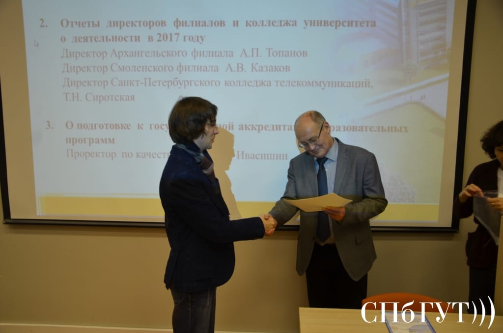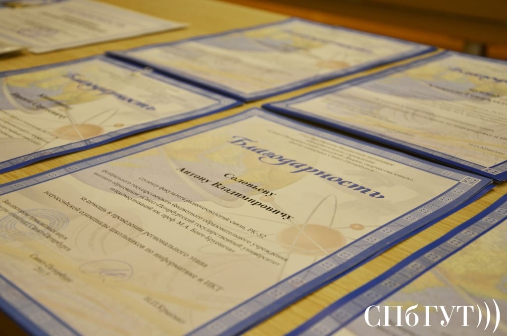 • Вручение Благодарственных писем Санкт-Петербургского центра олимпиад большой группе работников и студентов СПбГУТ за помощь в проведении регионального этапа Всероссийской олимпиады школьников по информатике и ИКТ
