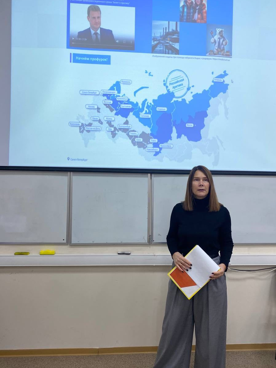В октябре в Санкт-Петербургском колледже телекоммуникаций им. Э. Т. Кренкеля проводились профориентационные уроки «Билет в Арктику» для студентов 1 и 2 курса. Занятия прошли в рамках форума «Движение первых».
