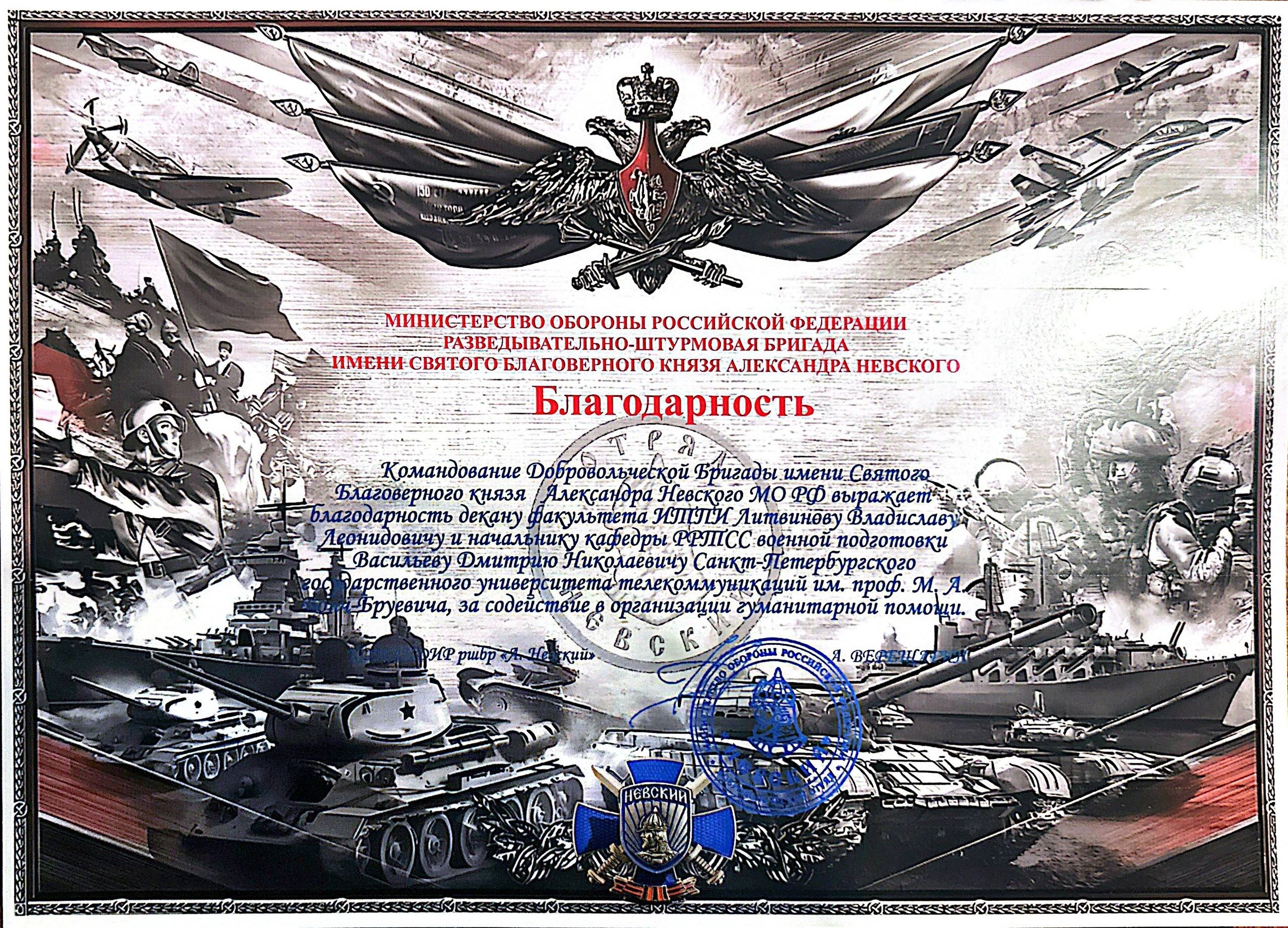 Минцифры России наградило Почетной грамотой коллектив СПбГУТ