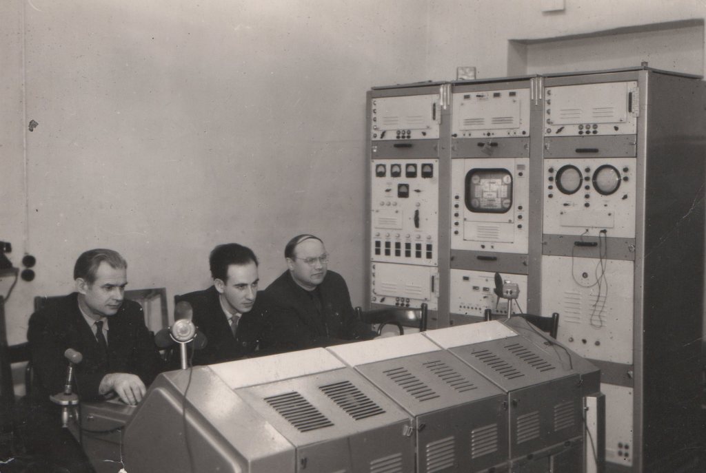2 фотография – Аппаратная ЦТВ ЛЭИС, в центре – видеоинженер Н. Ерганжиев, 1960 год.