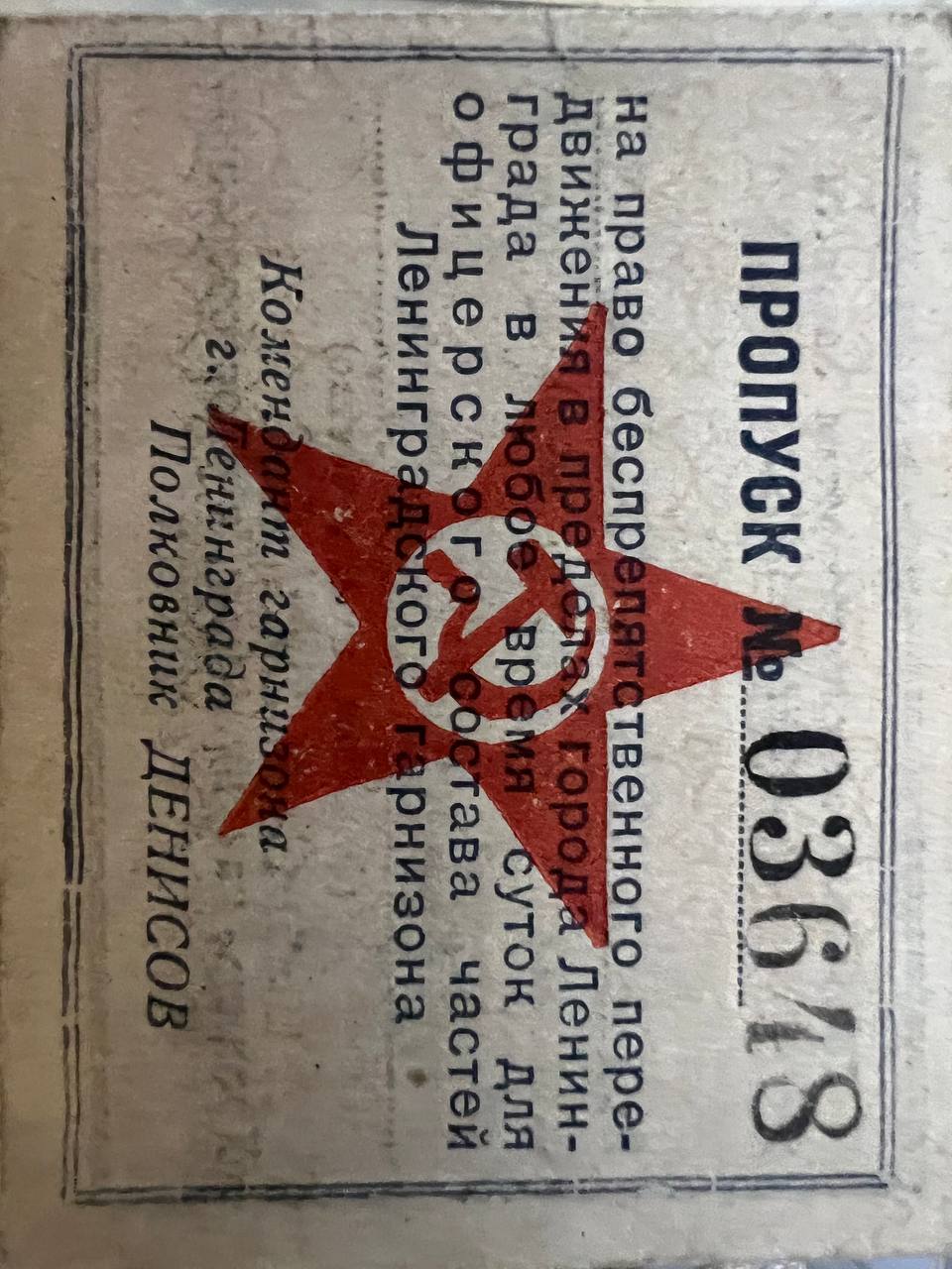 Особую ценность в Музее представляет пропуск на право беспрепятственного передвижения в пределах города Ленинграда в любое время суток для офицерского состава частей Ленинградского гарнизона. Это ключ к перемещению по ночному, замёрзшему, находящемуся под постоянным обстрелом городу. Пропуск позволял своему владельцу исполнять долг, не оглядываясь на часы. Для связистов, чья работа была критически важна для координации обороны, такие пропуска были необходимостью. С таким пропуском человек мог спешить на разрушенный бомбёжкой узел связи, чтобы восстановить жизненно важную линию, или добираться до командного пункта для срочного ремонта аппаратуры.