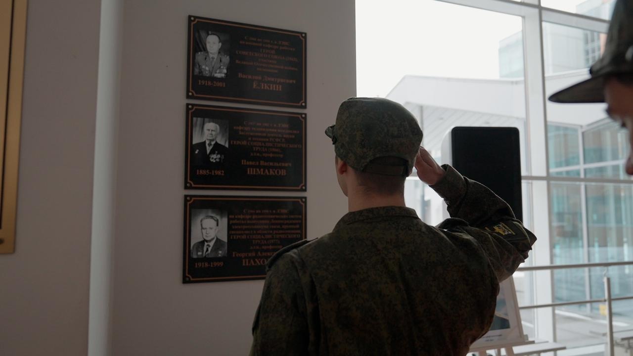 Алексей Музыкантов познакомил участников с биографией Героя Советского Союза полковника Василия Ёлкина, участника Великой Отечественной войны, который много лет работал на военной кафедре ЛЭИС. Он отметил, что и выпускники ВУЦ имеют государственные награды, героически проявляют себя на фронтах СВО.