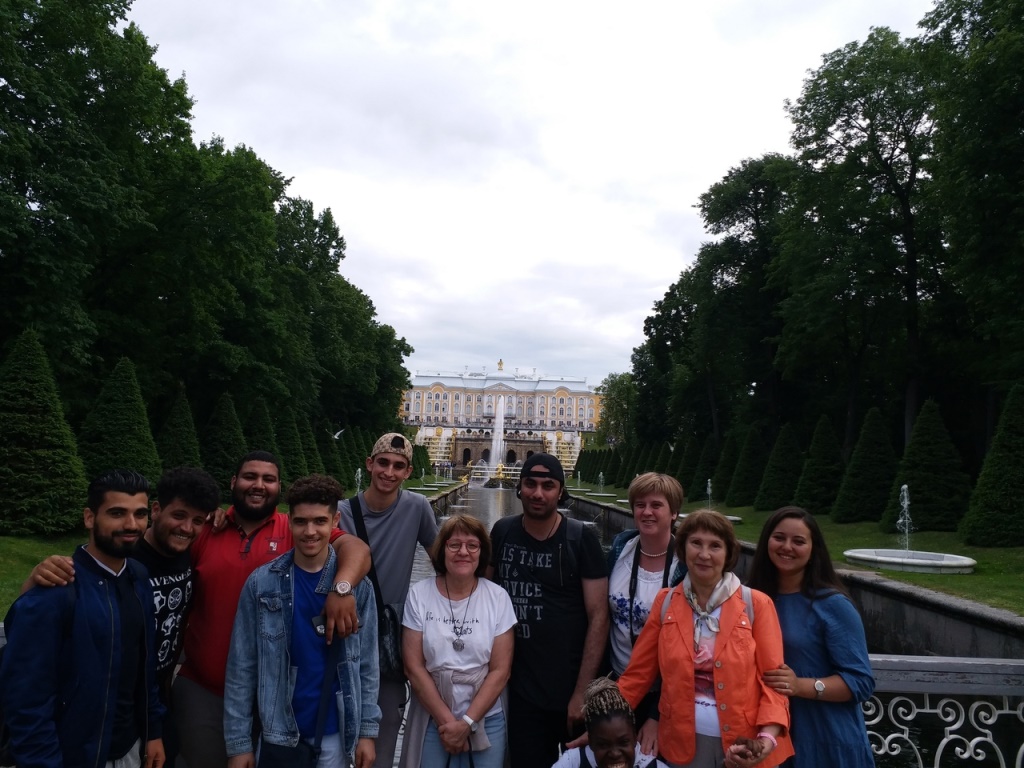 Отдел международного сотрудничества СПбГУТ организовал экскурсию в Петергоф для слушателей подготовительного отделения для иностранных граждан. Вместе с группой в Петергоф выехали и преподаватели подготовительного отделения – Ольга Карева, Илона Эгипти и Елена Печникова.