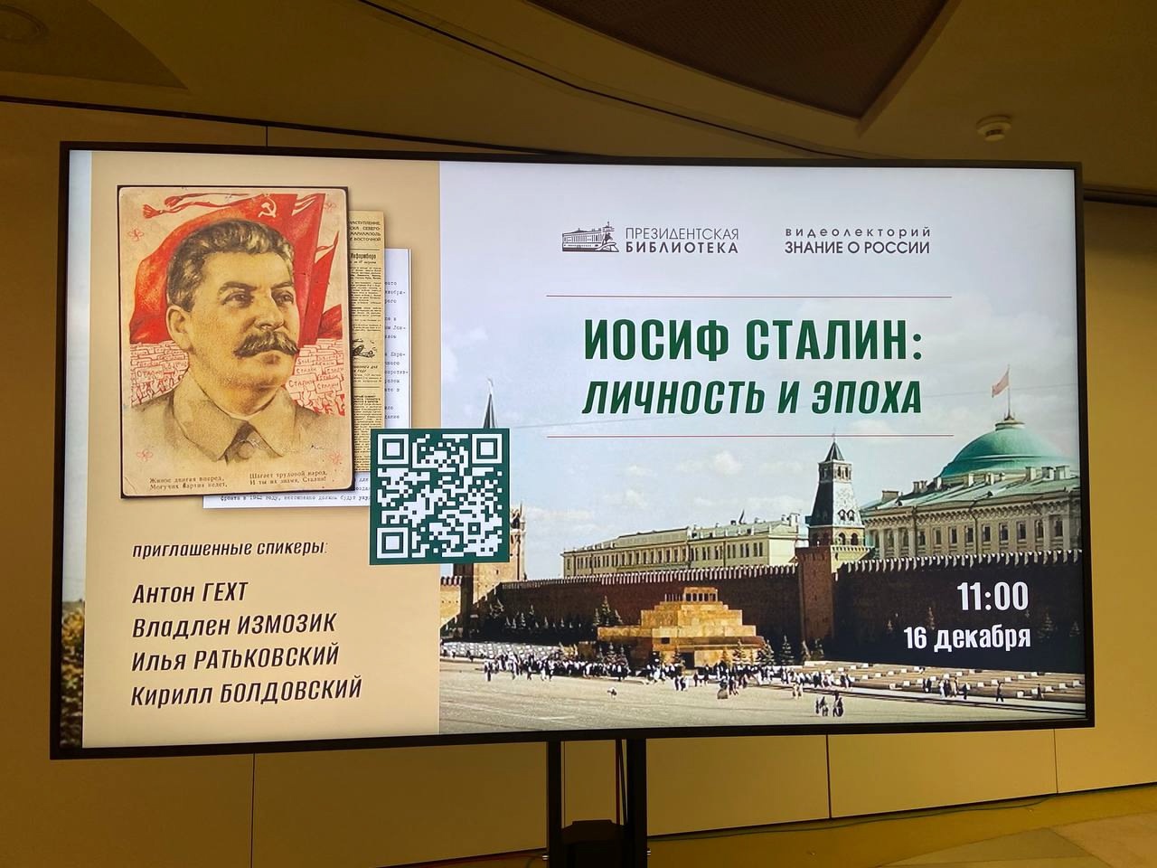 16 декабря в Президентской библиотеке в рамках видеолектория «Знание о России» состоялся круглый стол, посвящённый личности и эпохе Иосифа Виссарионовича Сталина (1878–1953). К мероприятию присоединились специалисты кафедры истории и регионоведения СПбГУТ.