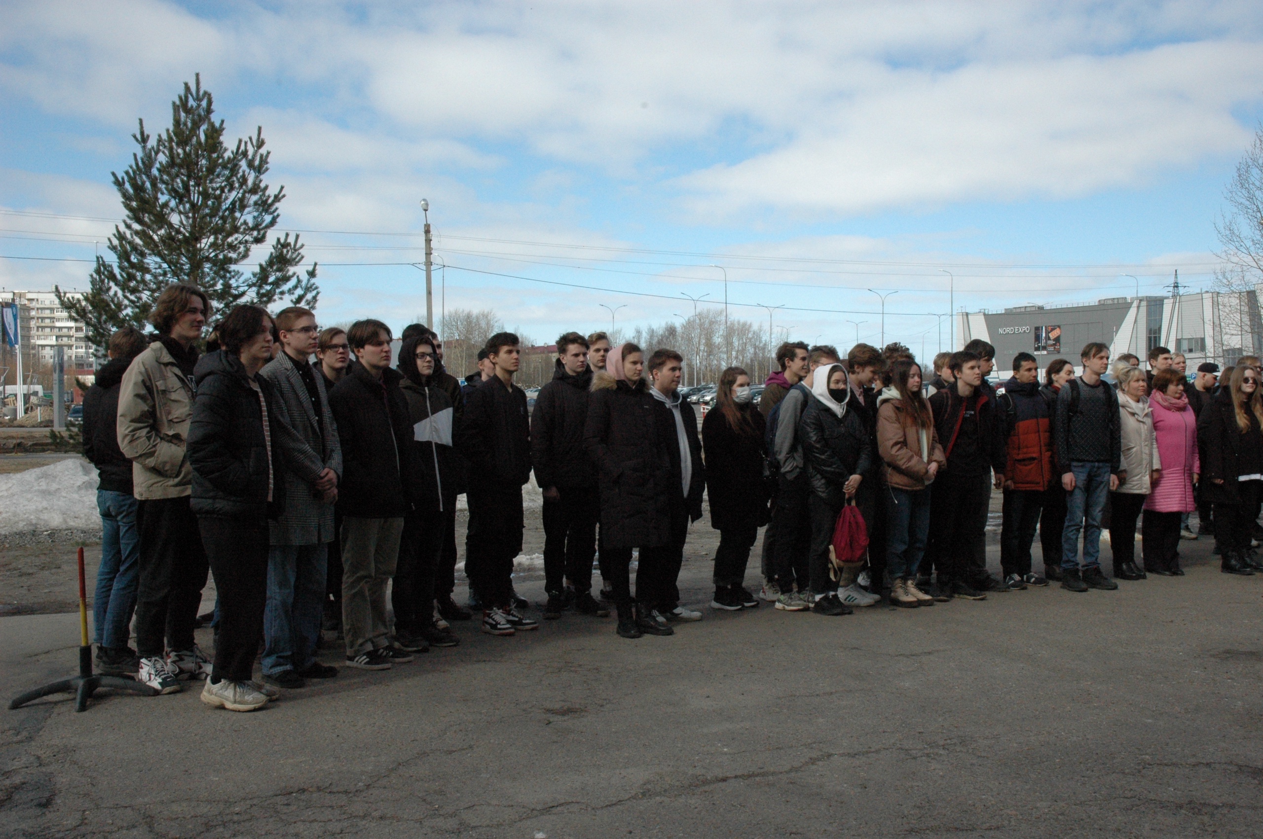 Перед зданием учебного заведения, где в 2021 году был открыт бюст изобретателя, провели памятный митинг «Дела Б. Л. Розинга – достойны!».