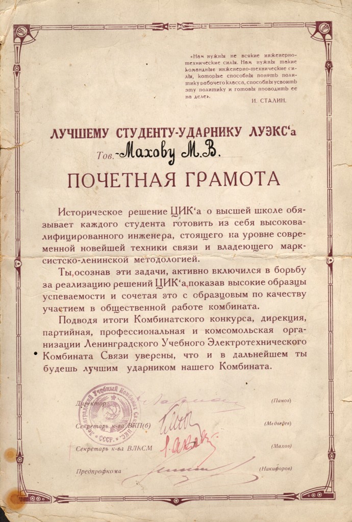 Начавшийся в 1929 г. период индустриализации требовал специалистов для новых отраслей промышленности. Связь была одной и приоритетных областей. Наш вуз был основан как Ленинградский электротехнический институт связи (ЛЭИС) в 1930 г. в составе Ленинградского Учебного Комбината Связи (ЛУКС), который включал еще техникум, курсы и рабфак. Первыми абитуриентами ЛЭИС были рабочие предприятий слабого тока со стажем и выпускники подготовительных курсов. В этом же году были основаны также Ленинградский текстильный институт (выделился из Ленинградского технологического института), Финансово-экономический и Ленинградский кораблестроительный институты (выделились из Политехнического института) и др.