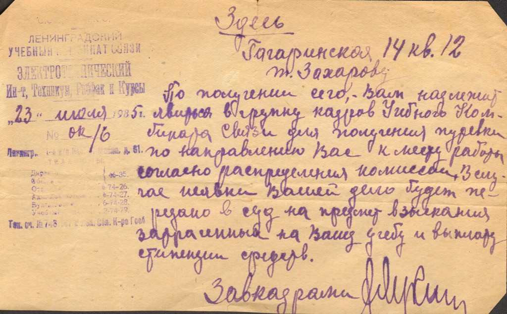 Информация предоставлена КПЦ «Музей СПбГУТ»