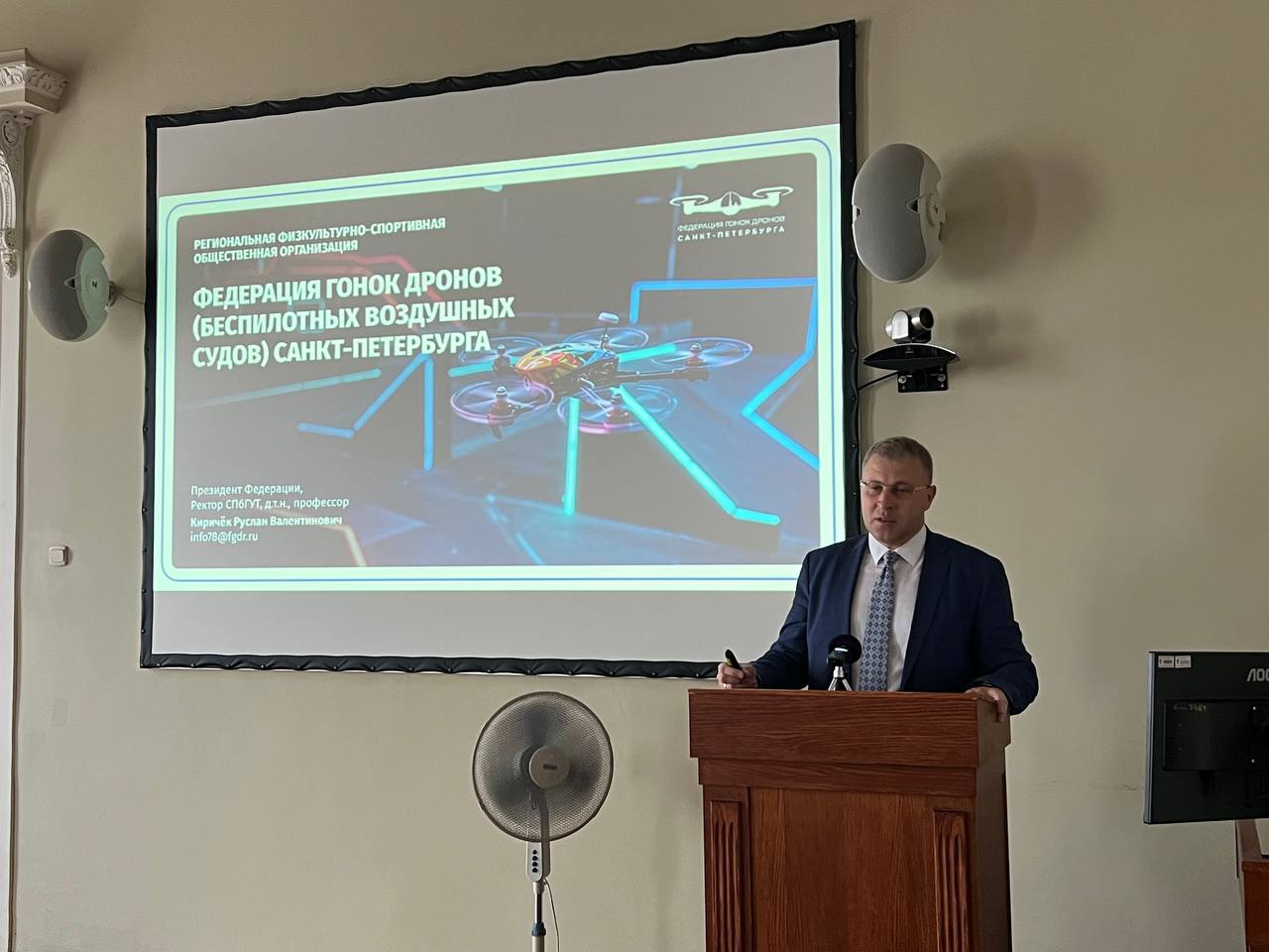 В своём докладе ректор Руслан Киричёк сделал акцент на стремительном развитии видов спорта, связанных с современными технологиями, — гонок дронов и соревнований роботов.