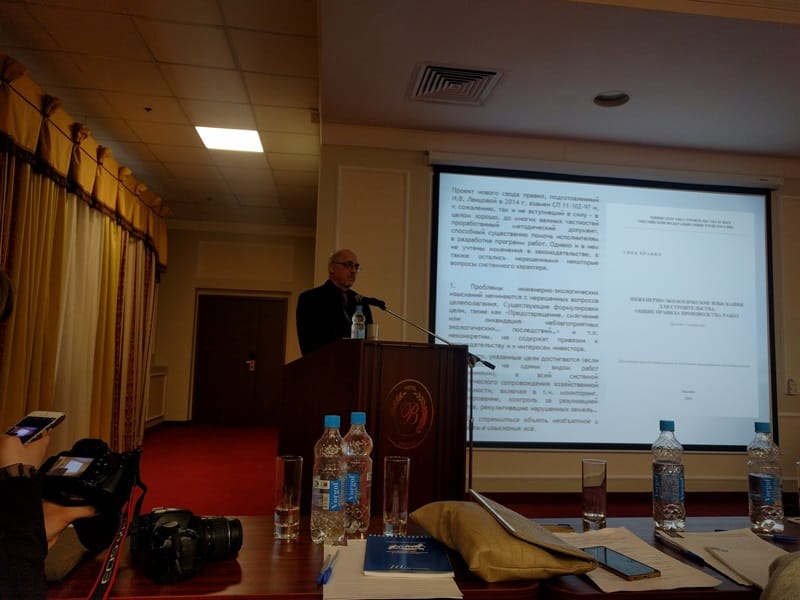 В работе конференции принял участие профессор кафедры экологии и безопасности жизнедеятельности д-р геогр. наук, проф. Стурман В.И. Представленный доклад «Необходимость и основные направления совершенствования нормативной базы инженерно-экологических изысканий» вызвал большой интерес и принят за основу для дальнейшей работы по совершенствование Свода правил по инженерно-экологическим изысканиям.