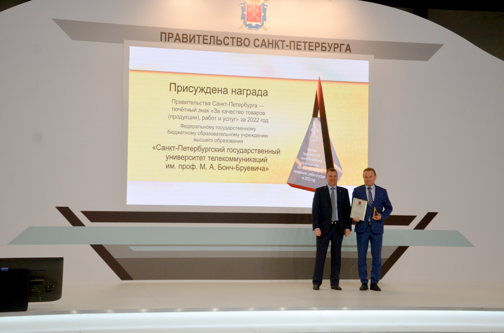 По результатам конкурса из 61 предприятия и организации было выбрано 17 лучших. Санкт-Петербургский государственный университет телекоммуникаций им. проф. М. А. Бонч-Бруевича занял 1 место и был удостоен почетного знака. Награды вручили и. о. ректора СПбГУТ Георгию Машкову.