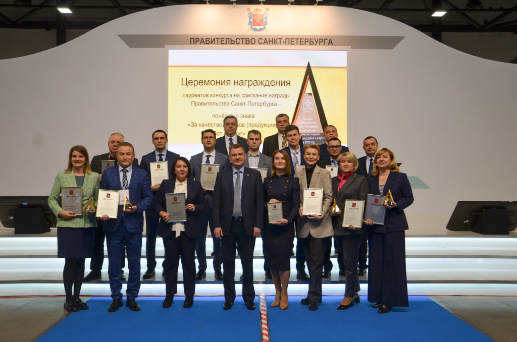 30 ноября в рамках международного форума «Российский промышленник» состоялась торжественная церемония награждения победителей конкурса на соискание награды Правительства Санкт-Петербурга – почетного знака «За качество товаров (продукции), работ и услуг». Организатором выступил Комитет по промышленной политике, инновациям и торговле Санкт-Петербурга.