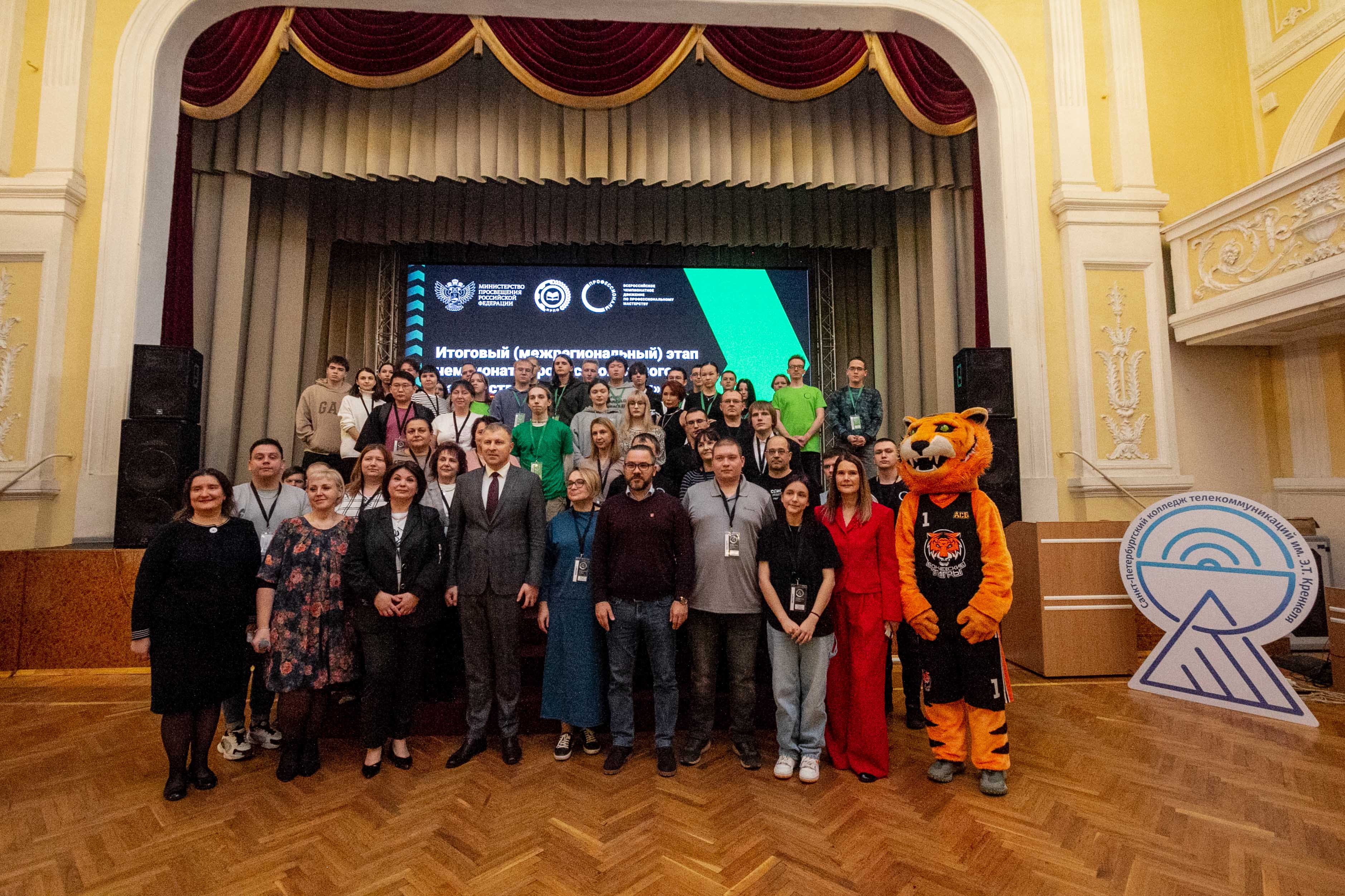 На сцене приветствовали экспертов и участников из 25 регионов от Санкт- Петербурга до Приморского края. Это победители региональных этапов чемпионата «Профессионалы» по компетенциям «Цифровая трансформация» и «Цифровые возможности для бизнеса».