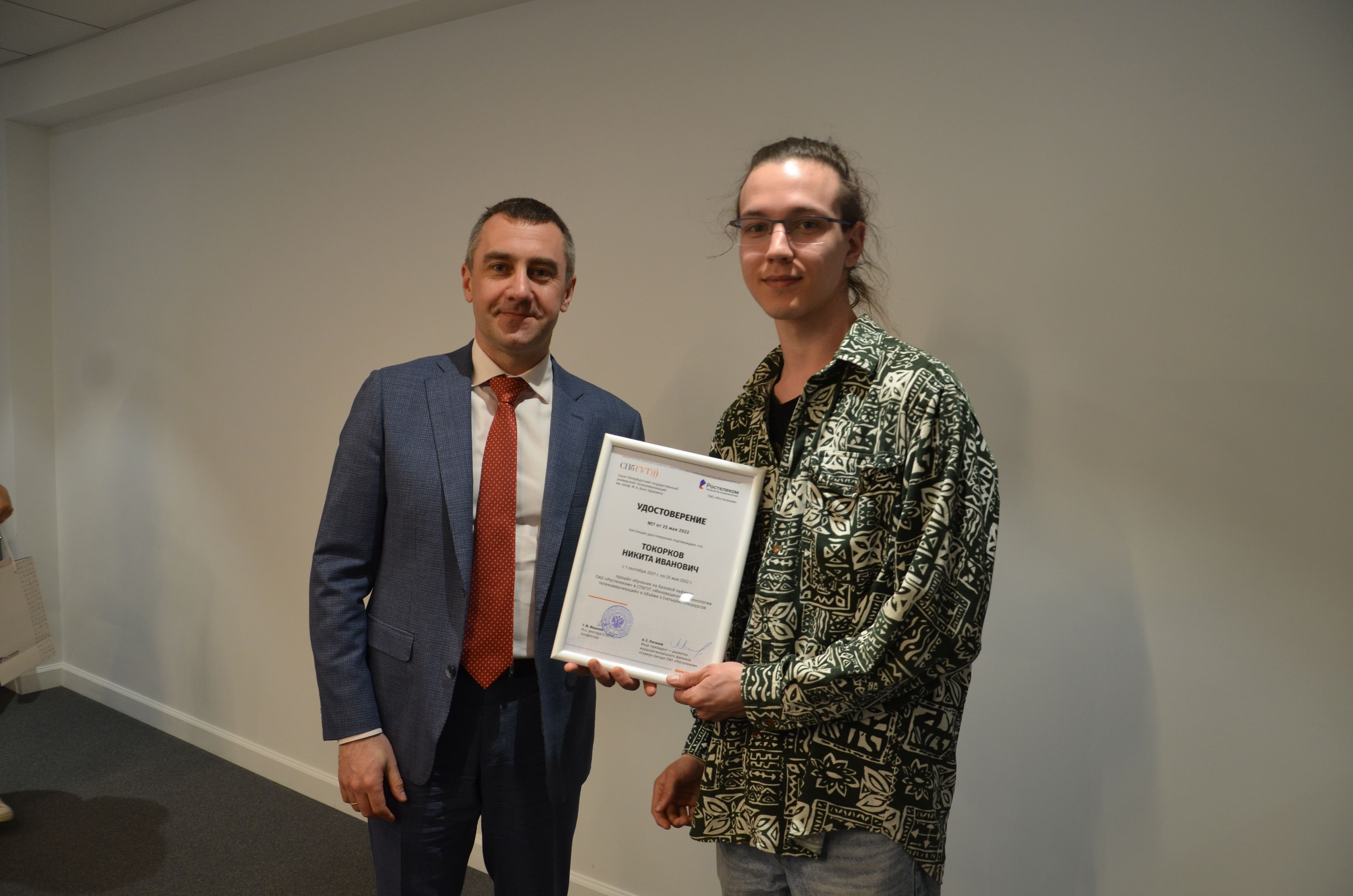 В завершение круглого стола Александр Логинов напутствовал выпускников, пожелал им развития в профессиональной сфере и вручил сертификаты и ценные подарки.
