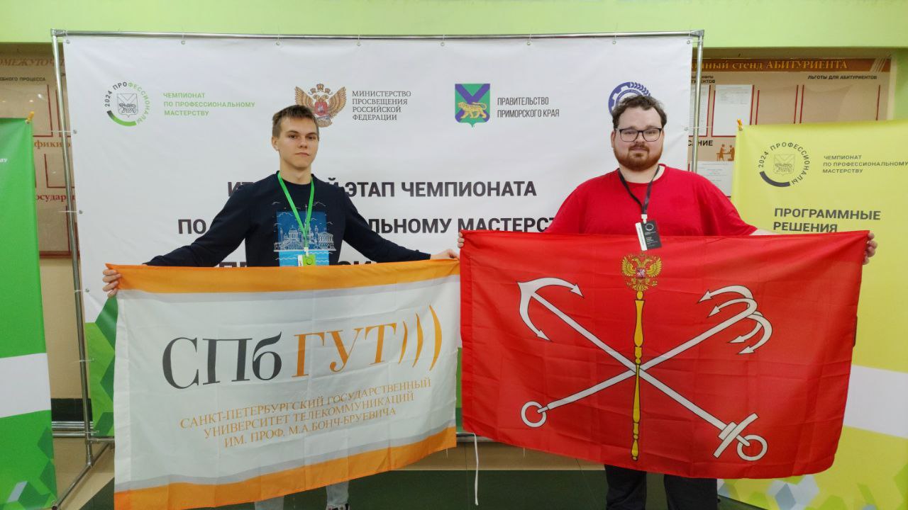 СПбГУТ на соревновании представили Владислав Кузнецов из Санкт-Петербургского колледжа телекоммуникаций им. Э. Т. Кренкеля и Егор Антипин из Архангельского колледжа телекоммуникаций им. Б. Л. Розинга.