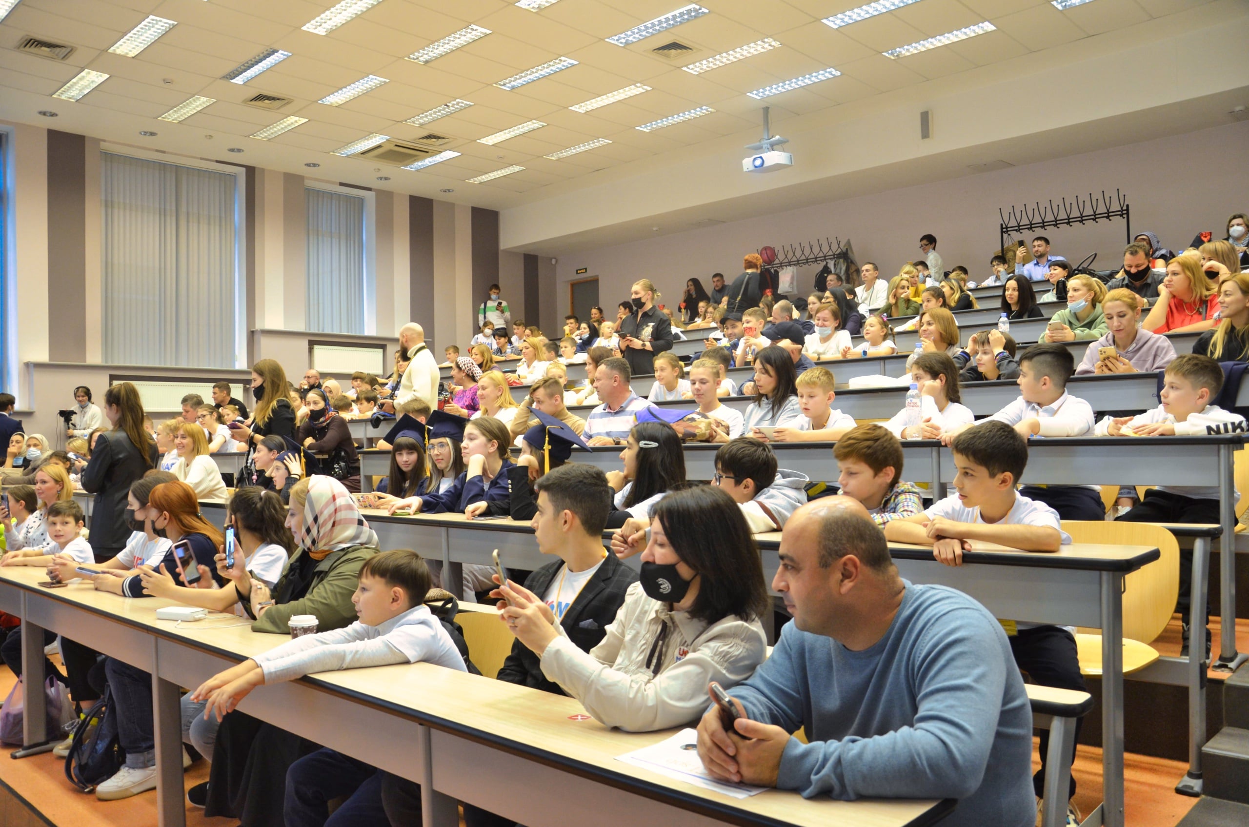 В СПбГУТ ко встрече с юными математиками подготовились основательно. Университетский отдел довузовской подготовки провел для детей профориентационную лекцию. О развитии в университете киберспорта рассказал специалист по культурно-массовой работе, руководитель клуба CyberBonch Артур Годлевский. Для ребят организовали выставку: показали им установку генеративной графики для голографических дисплеев и модель «песочницы» – систему формирования ландшафта с применением AR и VR (оба проекта в конце сентября СПбГУТ демонстрировал в Москве на научно-популярном образовательном фестивале «Техносреда»). В течение олимпиадного дня студенческий педагогический отряд «Орбита» развлекал гостей разминкой, флешмобами и зарядкой.