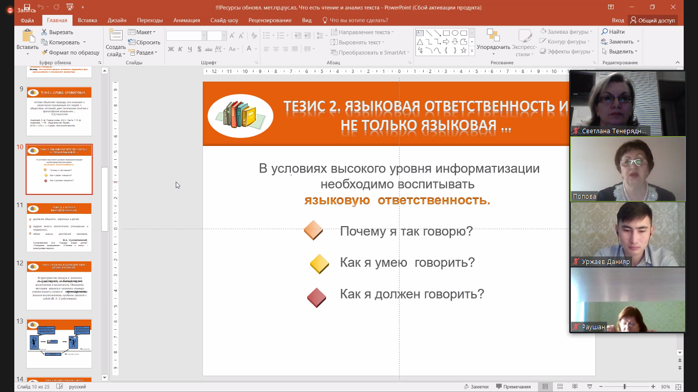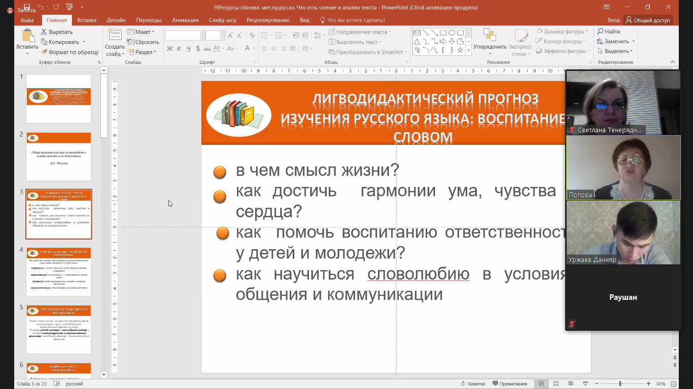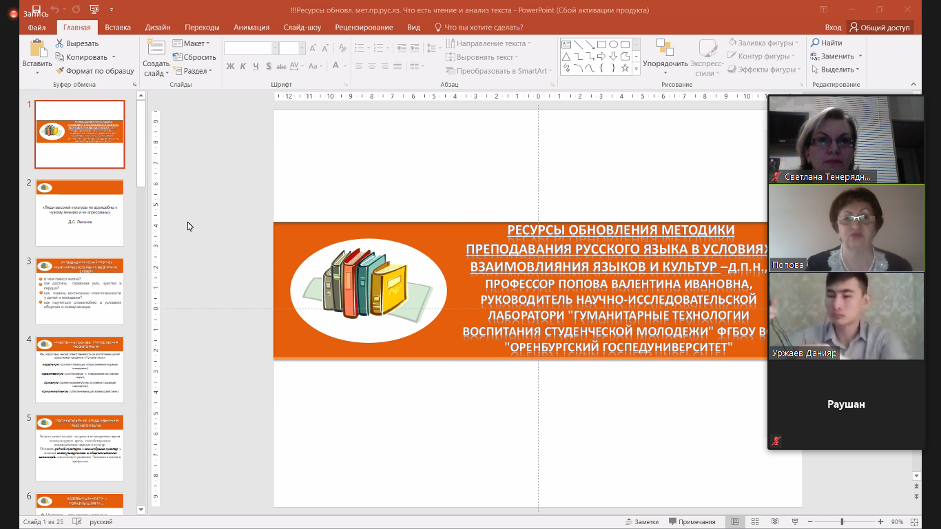 8 января Международная академия повышения педагогического мастерства (г. Нур-Султан, Казахстан) провела вебинар «Ресурсы совершенствования методики преподавания русского языка в условиях взаимовлияния языков и культур», в котором приняла участие доцент кафедры иностранных и русского языков С.П. Тенеряднова.
