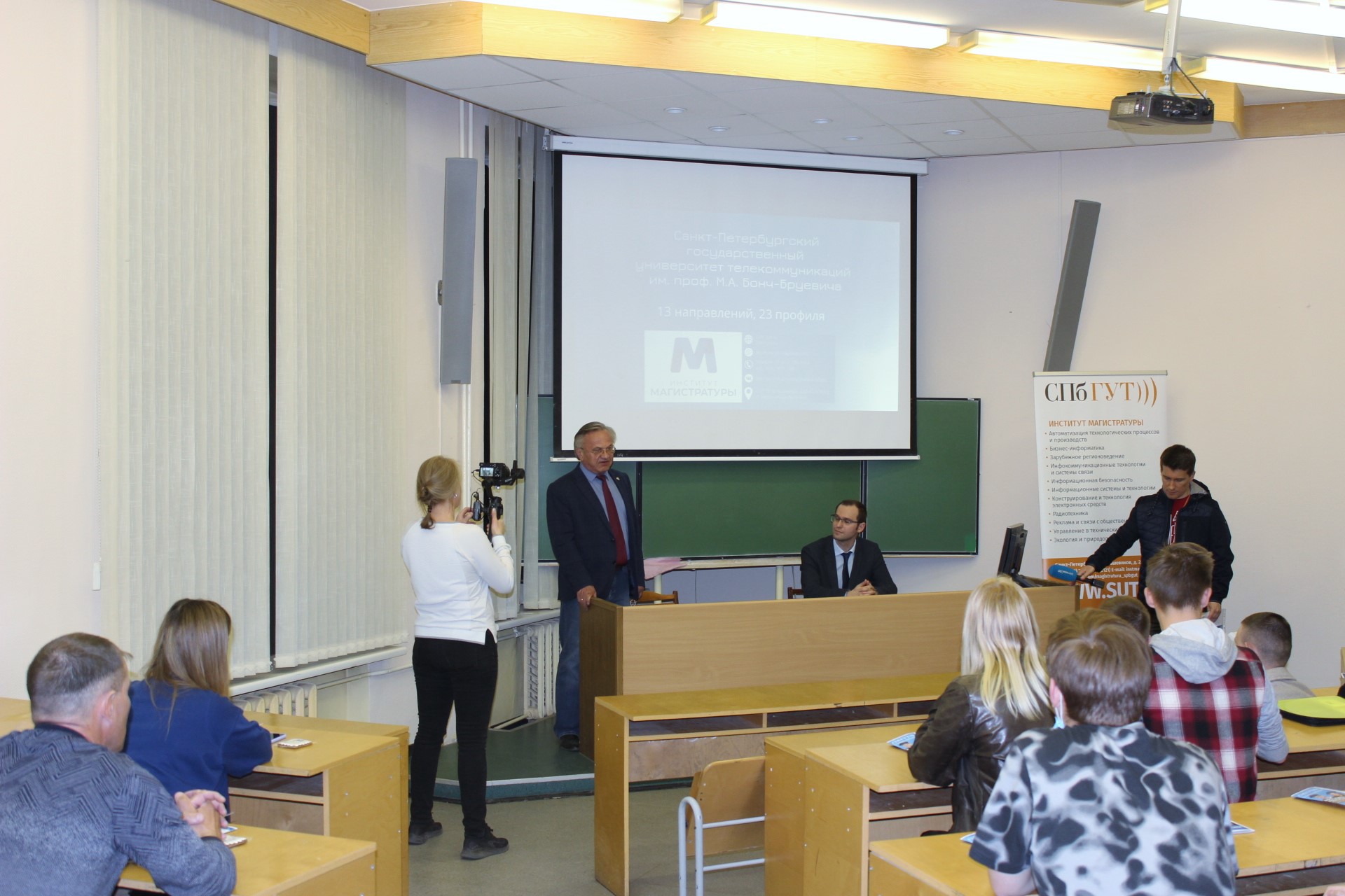«Поступай в Архангельске – учись в Санкт-Петербурге!» – под таким лозунгом 17 мая в Архангельском колледже телекоммуникаций им Б. Л. Розинга прошёл День открытых дверей Института магистратуры СПбГУТ. Мероприятие посетили более 50 человек из Архангельска, Северодвинска, Новодвинска и других городов Архангельской области.