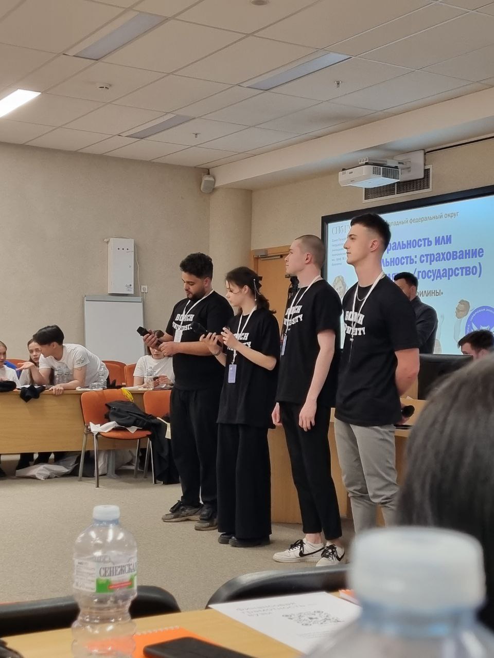Команда «Филины» из СПбГУТ представила Северо-Западный федеральный округ и выступила со своим исследованием на тему «Нейтральность или лояльность. Страхование (позиция регулятор)». В состав команды вошли студенты факультета СТЭД Яна Платонова, Дмитрий Суздалов, Тимур Глушач и Лаврентий Ямпуров.